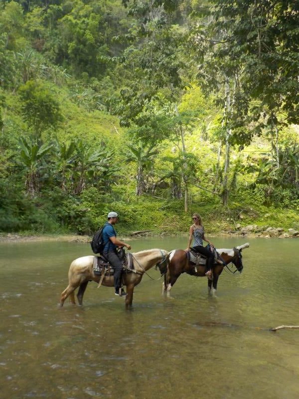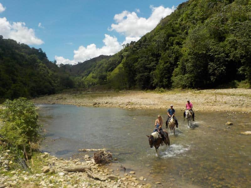 Halber Tag Berge und Fluß – klasse Wetter – super schoene Landschaft – refrischendes Bad im Fluß – tolle Gäste – coole, entspannte Pferde – ein gelungener Nachmittag – Danke an unsere Gäste von Hotel Villa Taina Cabarete und von der Sprachschule Casa Goethe Sosua 🙂
