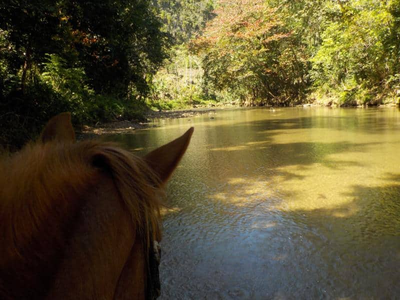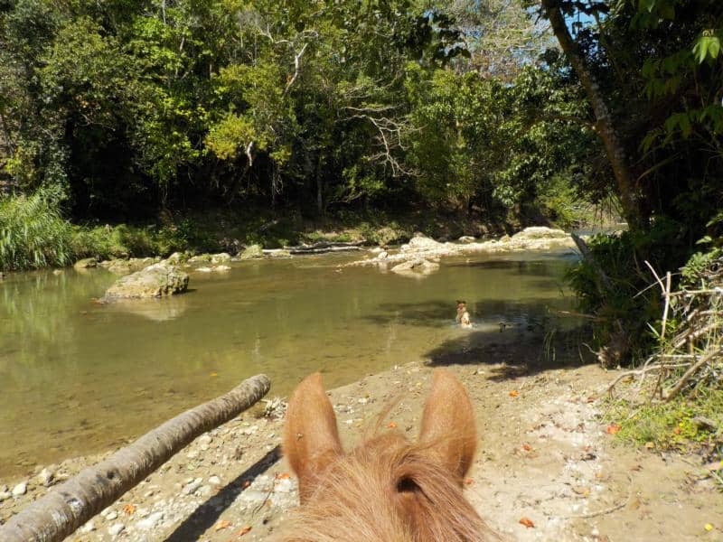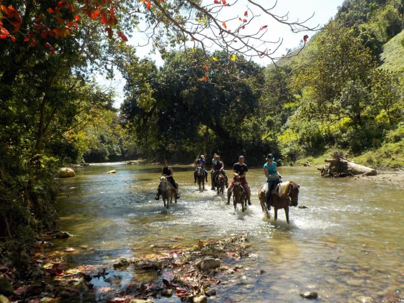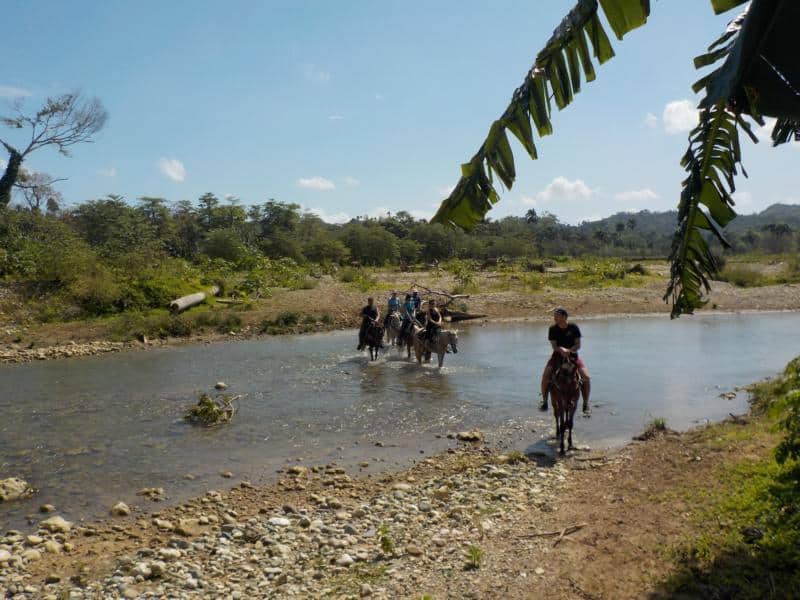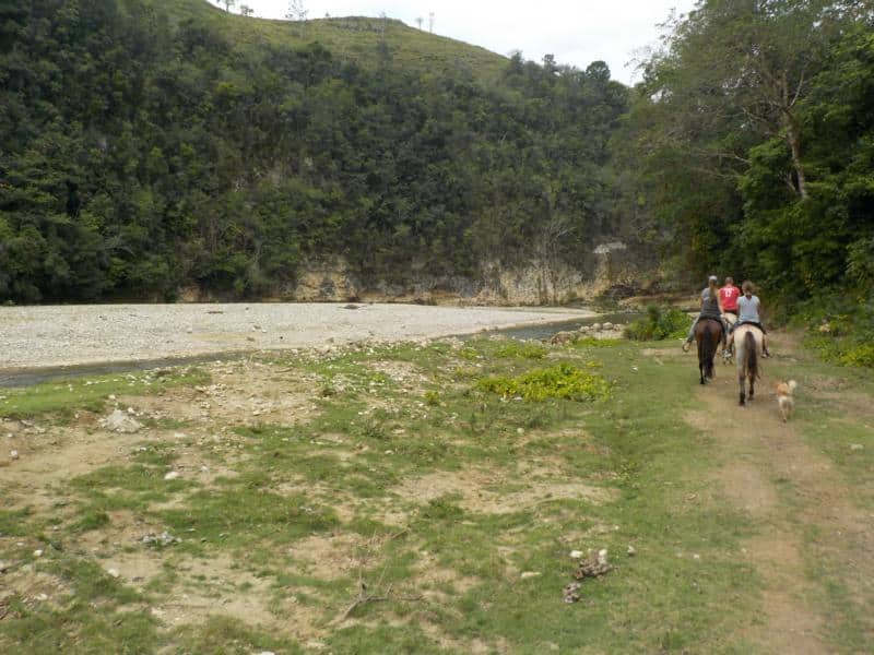 Vormittag Berge und Fluß – heute wieder Sonnenschein – Traumhafte Natur – glasklarer Fluß – tolle Gäste und die klasse Pferde – ein perfekter Vormittag – Danke an unsere Freunde und Gäste vom Hotel Villa Taina Cabarete