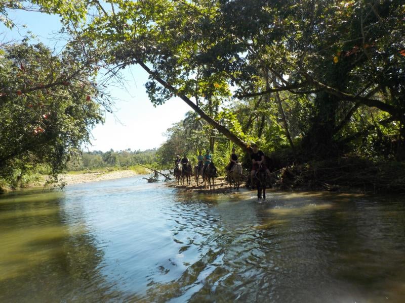 Wir ritten alle zusammen los , durch die Dörfer bis zum naturbelassenen Sandstrand – bis nach la Boca der Flußmündung – dort teilten wir die Gruppe auf – ein teil ging noch zu Wilson ins Restaurant zum Mittagessen und der andere Teil ritt gleich zurück zur Ranch – so machten wir also Halbtagestour und Ganztagestour 🙂 danke an unsere Gäste und Freunde Ursula und Bianca und an unsere Gäste von Iguana Mama , Sally mit Mann 🙂
