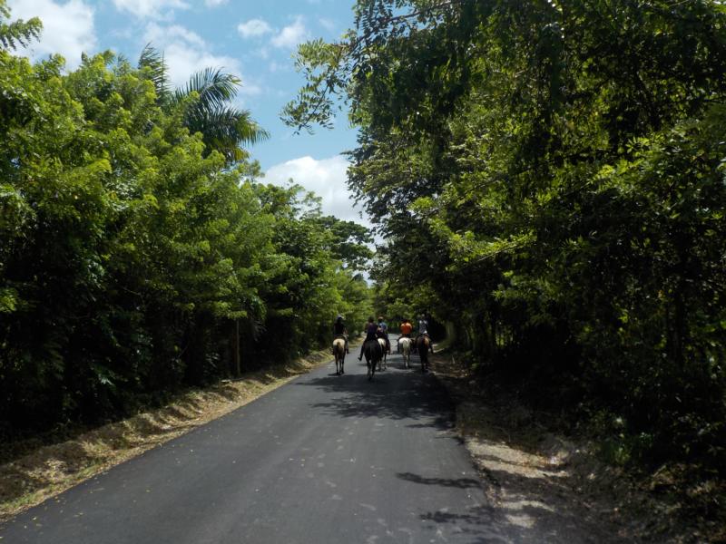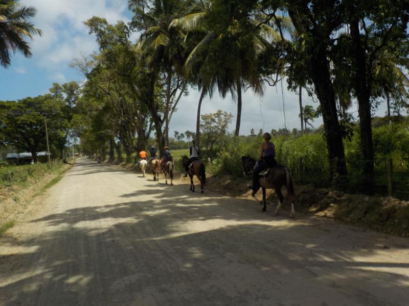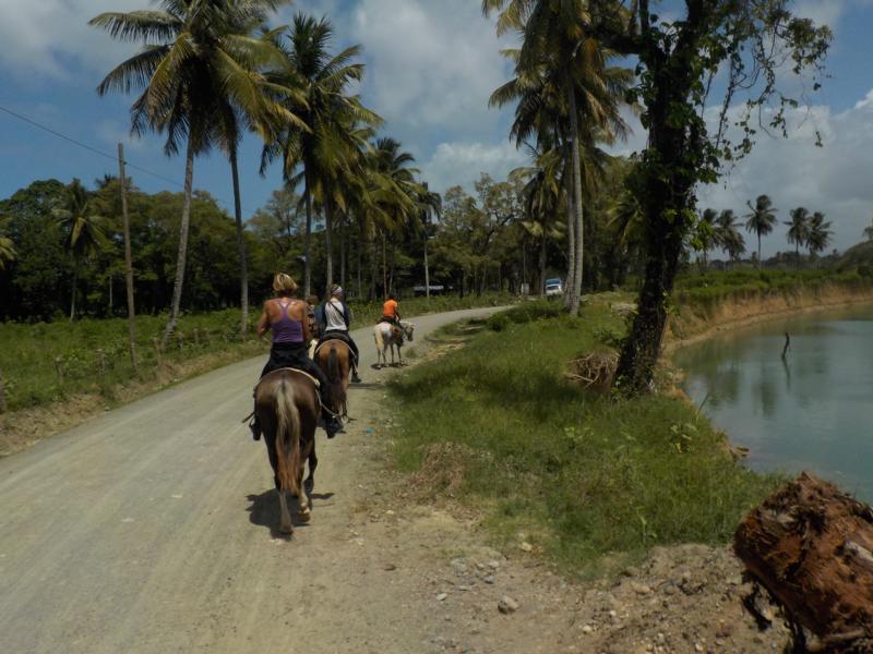 Halber Tag Berge und Fluß – nach dem es heute Nacht ein starkes Gewitter hatte und heute Morgen immer noch regnete , gaben wir aber die Hoffnung nicht auf- und ja es hörte auf zu regnen – wir hatten ein tolles Wetter zum reiten , bewölkt aber trocken 🙂 und wieder eine gemischte Gruppe , Erwachsene und Kinder , mit Reiterfahrung und auch ohne – danke an unsere Gäste und Freunde von der Tauchschule Merlin Sosua – es macht immerwieder Spass mit euch 🙂