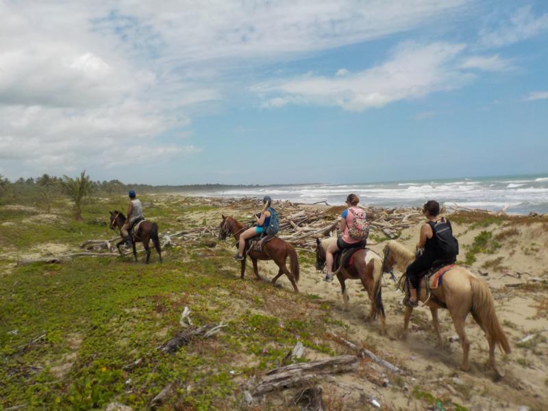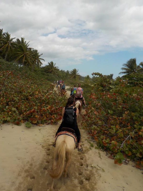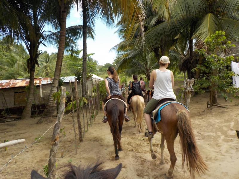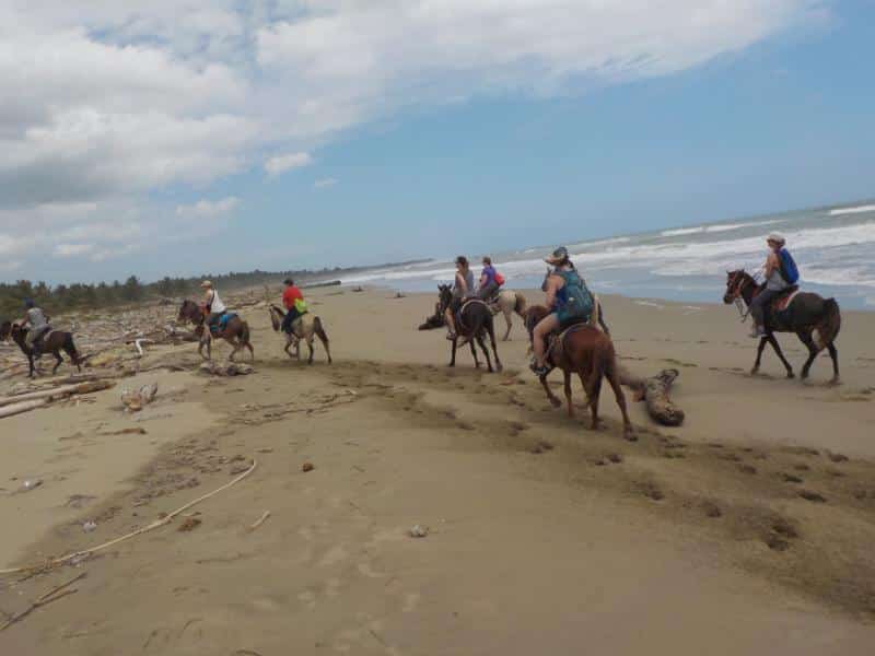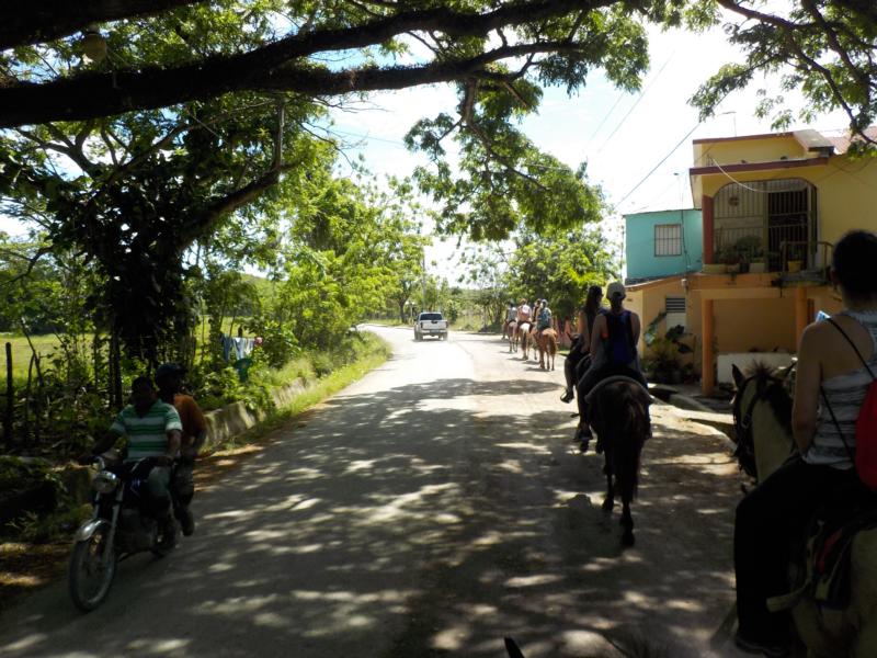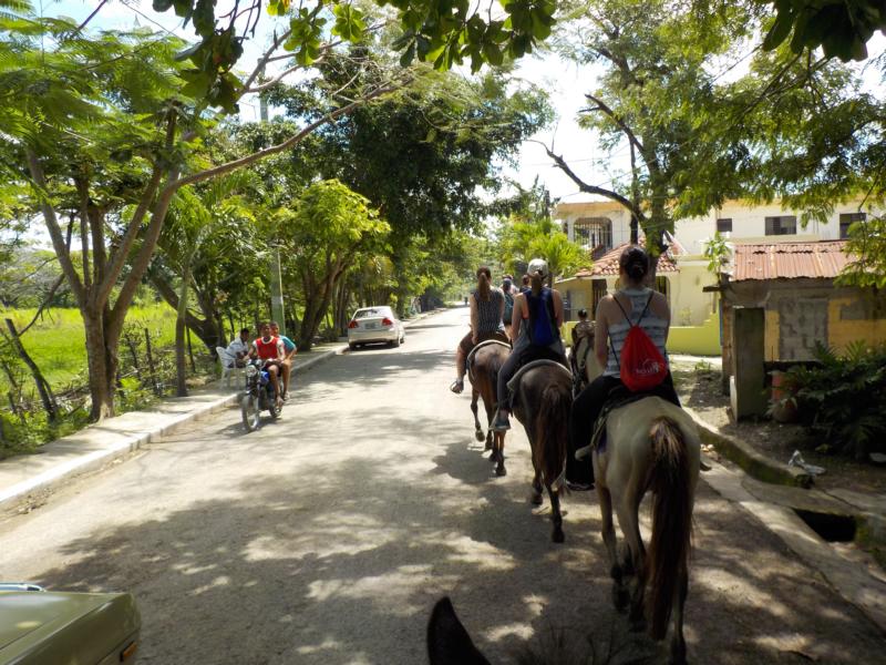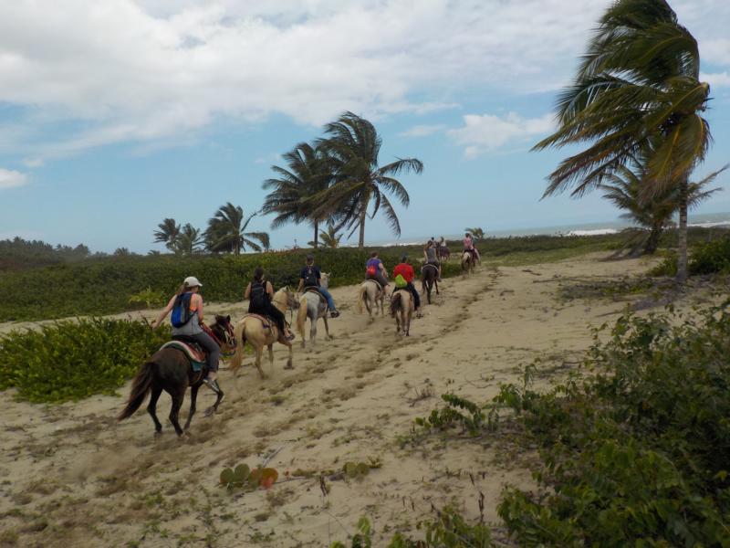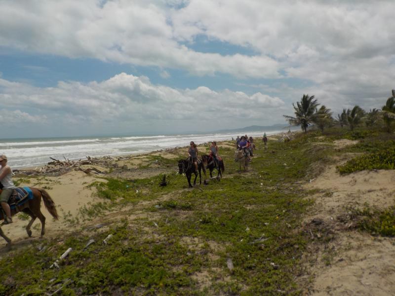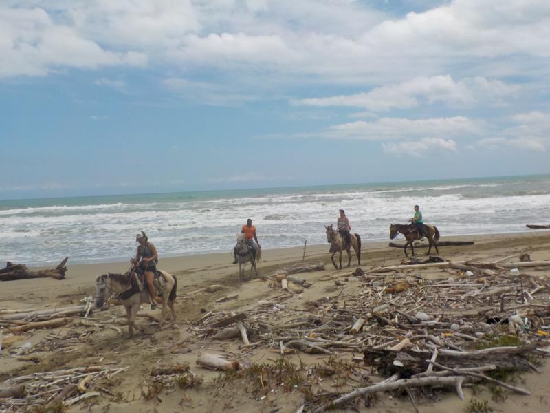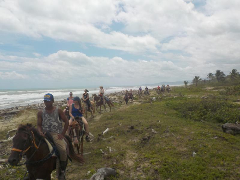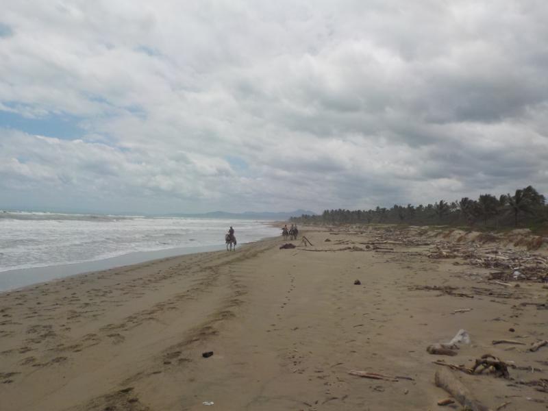 heute Vormittag ritten wir durch die Dörfer bis zum naturbelassenen Sandstrand – am Strand entlang bis zur Flußmündung la Boca – es war bewölkt , und zum Schluß auch etwas Nieselregen , doch wir hatten viel Glück mit dem Wetter , denn am Nachmittag regnete es ganz schön – Danke an unsere Gäste von Iguana Mama Cabarete 🙂