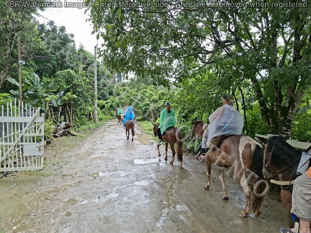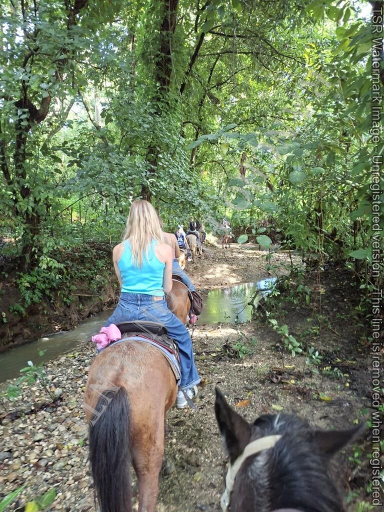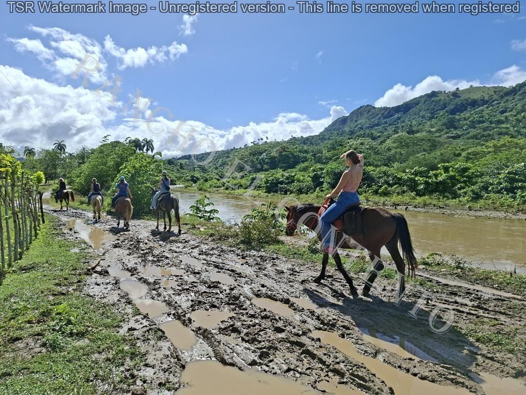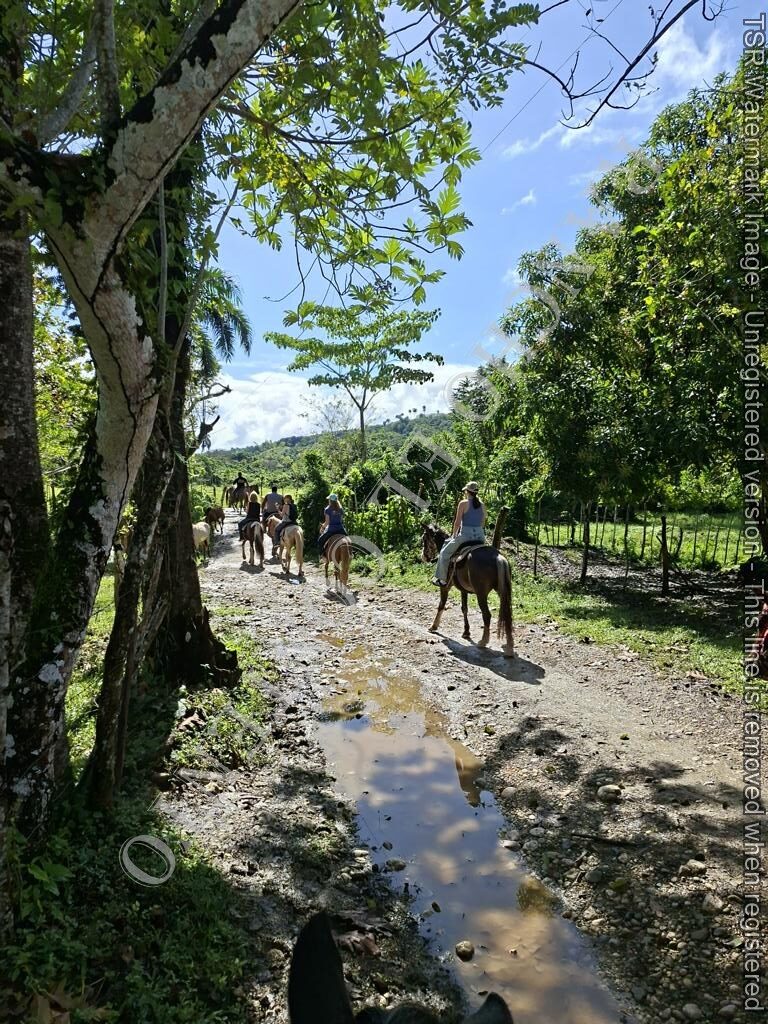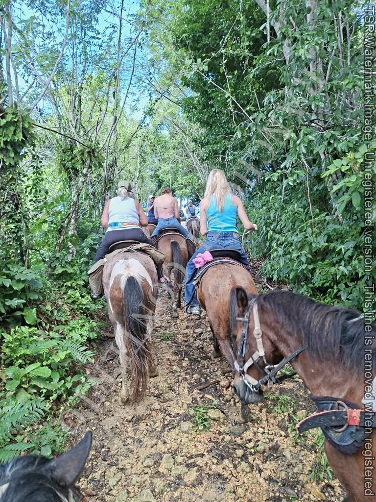Berge und Fluß – heute hatten wir Womenpower , eine Gruppe mit 10 Mädels . Von Anfänger bis zur gut erfahrenen Reiterin . Das Wetter , am Anfang noch Regen , doch die Mädels sagten kein Problem . Also die Regenponchos an und los gings . Nach etwa 10 Minuten hörte es auch schon auf zu regnen und nach der ersten Pause hatten wir Sonnenschein . Nach dem Ausritt ging es noch zu Rugama Tours zum Mittagessen und einer Gartenführung . Ein sehr schöner Tag mit tollen Gästen . Danke an Melissa, Kathy, Susan, Lauren, Josina, Laurel, Liz, Christina, Josie und Lena vom Seawinds Cabarete – und danke an das Team von Rugama für die gute Bewirtung und das leckere Mittagessen