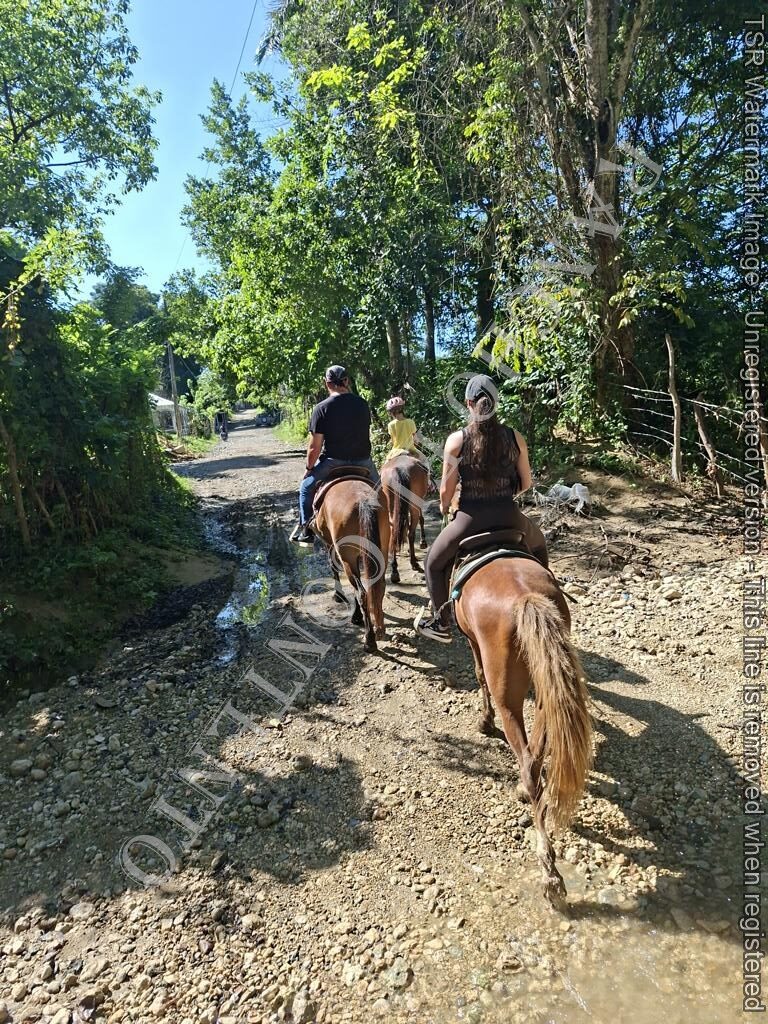 Berge und Fluß – am Sonntag hatten wir einen halbtages Ausritt in die Berge mit netten Gästen aus Deutschland und der Schweiz . Eine gemischte Gruppe mit Anfänger bis zur erfahrenen Reitern , Erwachsene und Kind . Alle genossen den Ausritt mit unseren braven Pferden und der traumhaften Landschaft im Hinterland , abseits vom Tourismus . Danke an unsere Gäste Kristin mit Familie vom Hotel Casa Marina Sosua und an Nina mit Tochter vom Hotel Villa Taina Cabarete – es war ein schöner Sonntag Vormittag mit euch