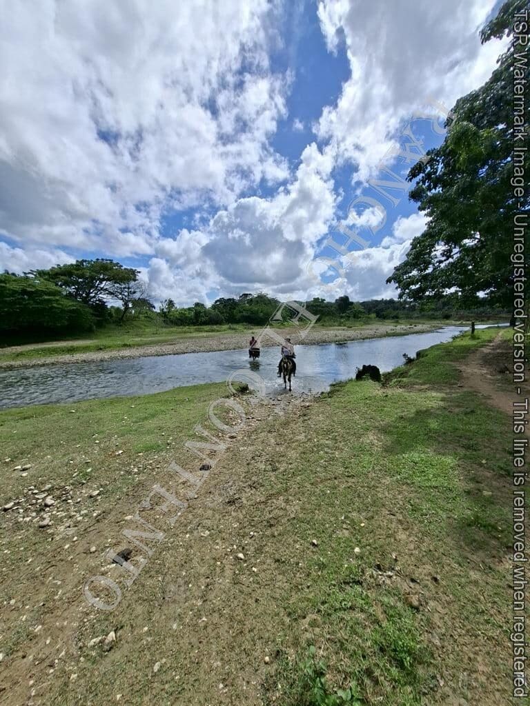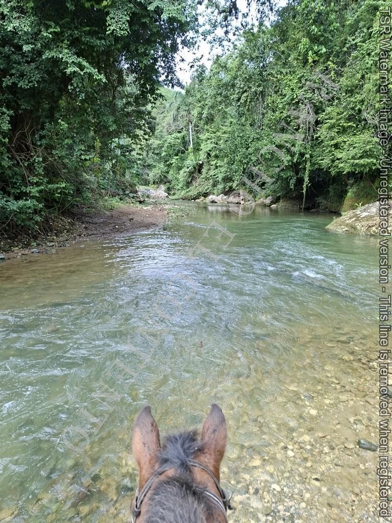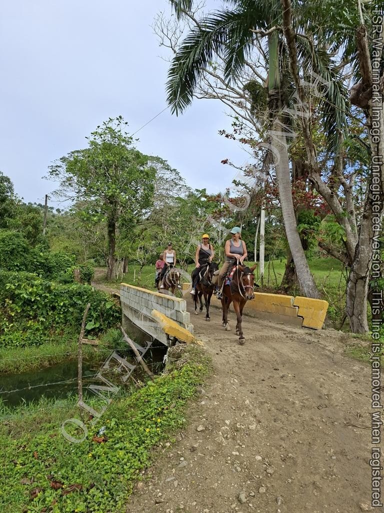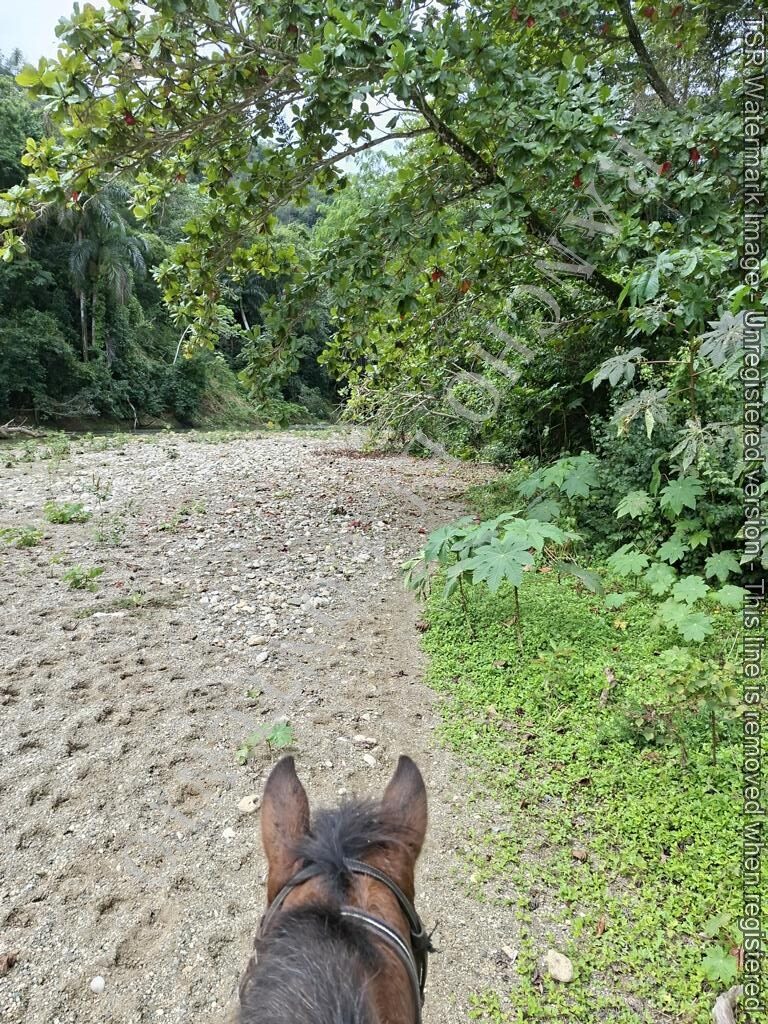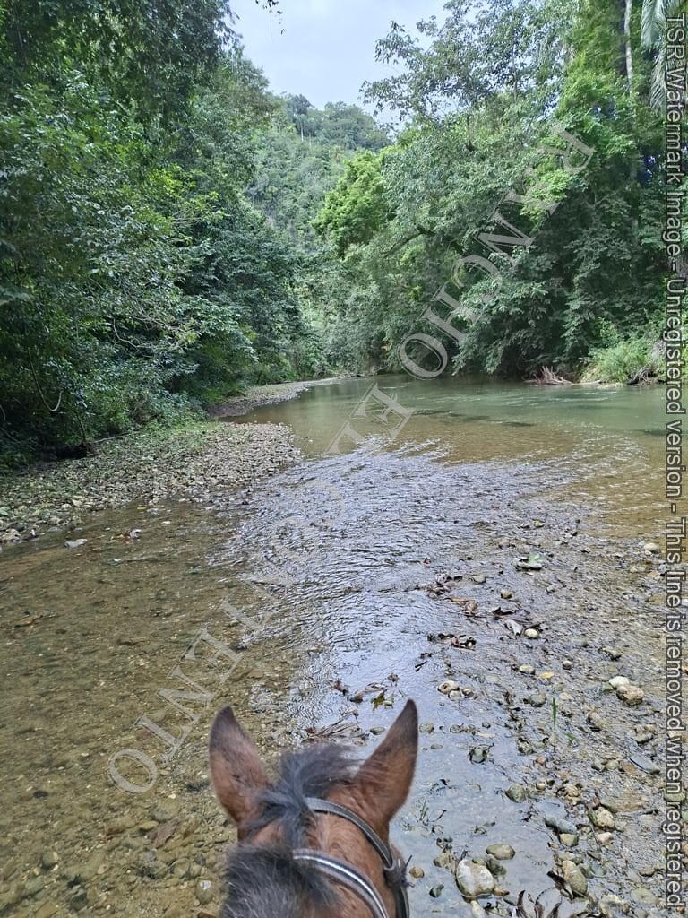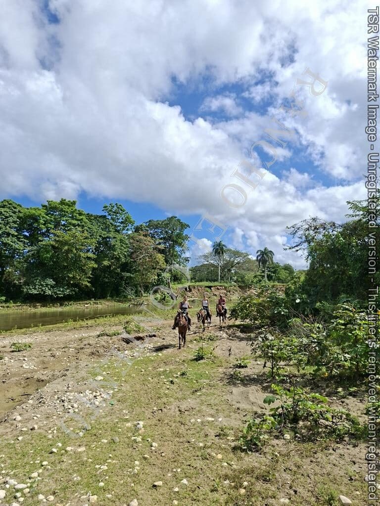 Berge und Fluß – heute waren wir mit erfahrene Reiter unterwegs und es ging dann auch etwas flotter voran . unsere Gäste aus Deutschland genossen die traumhafte Natur . Das wetter war auch super , nur ein kurzer Regenschauer , doch da waren wir am Colmado und machten gerade eine Pause , also im trockenen Danke an unsere Gäste Ute und Dorothee mit Tochter vom Casa Carmen Cabarete