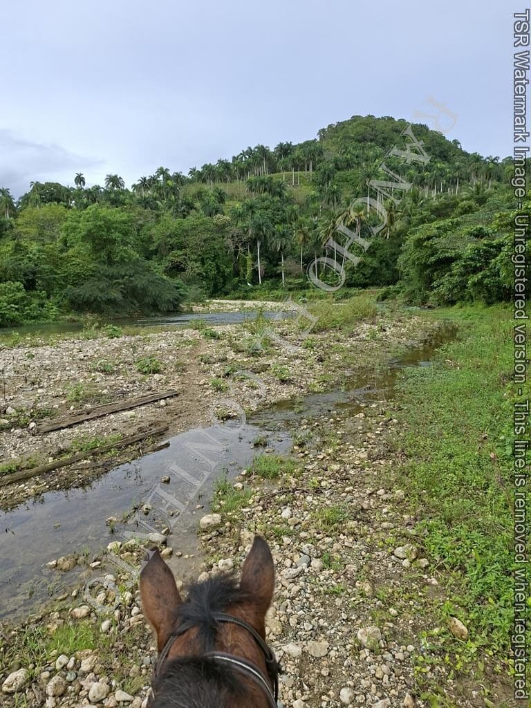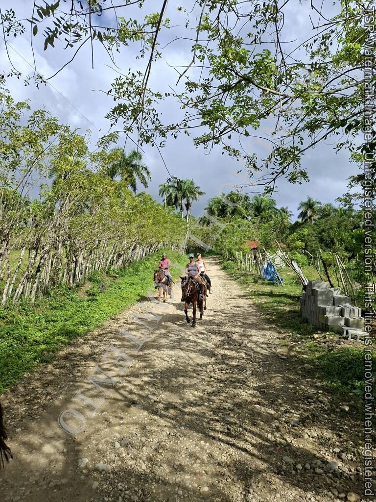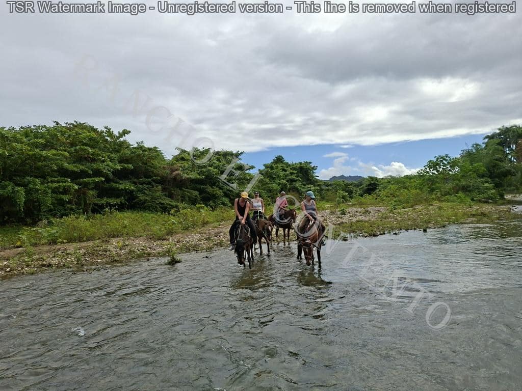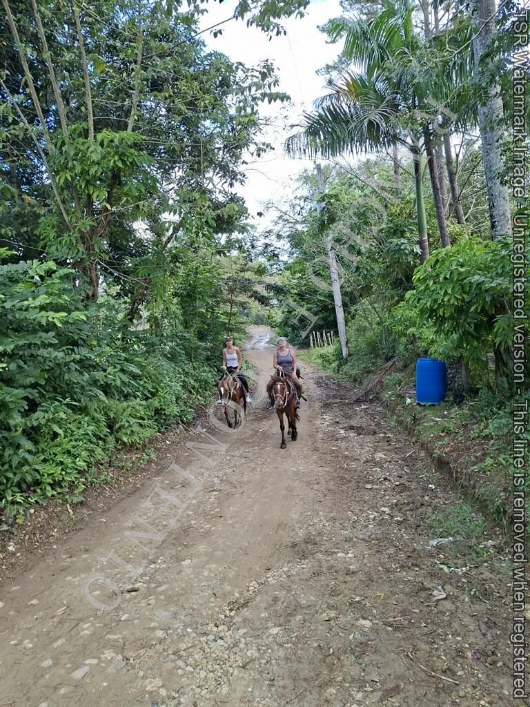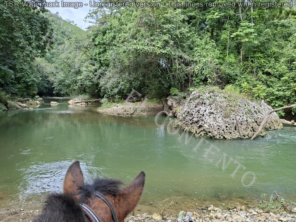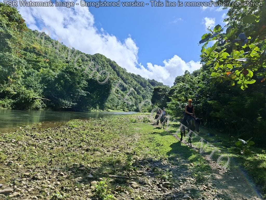 Berge und Fluß – heute waren wir mit erfahrene Reiter unterwegs und es ging dann auch etwas flotter voran . unsere Gäste aus Deutschland genossen die traumhafte Natur . Das wetter war auch super , nur ein kurzer Regenschauer , doch da waren wir am Colmado und machten gerade eine Pause , also im trockenen Danke an unsere Gäste Ute und Dorothee mit Tochter vom Casa Carmen Cabarete