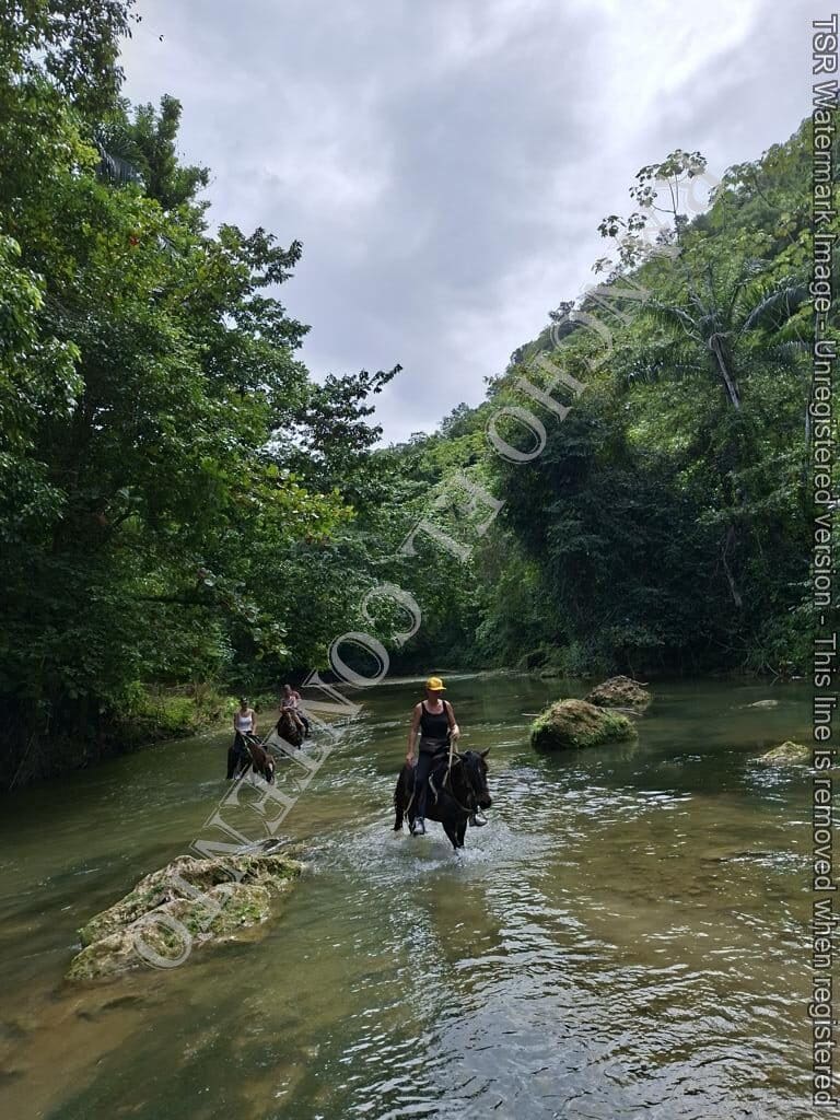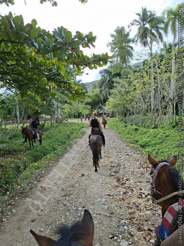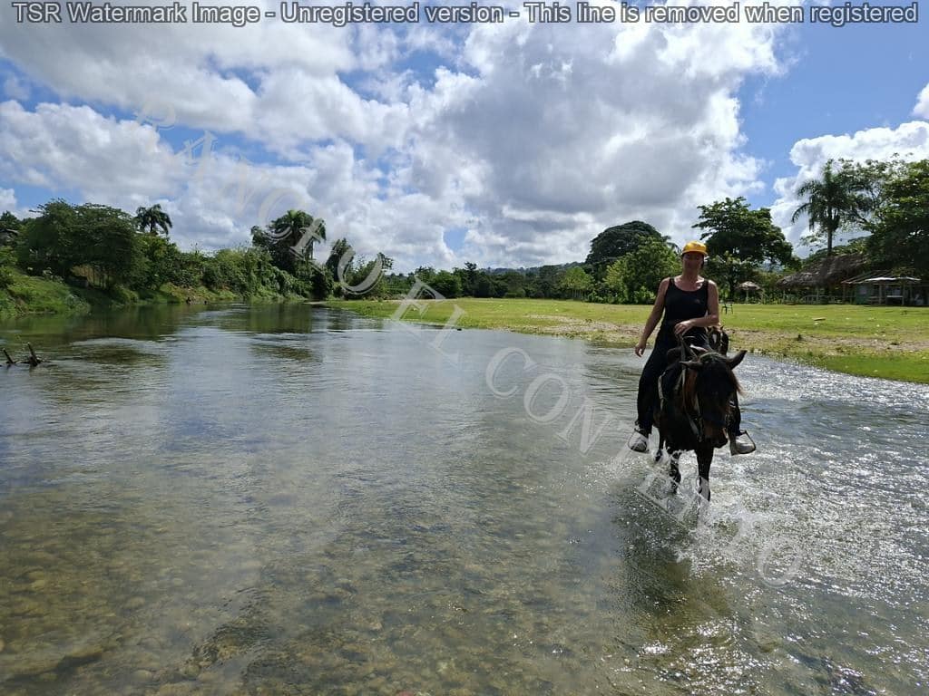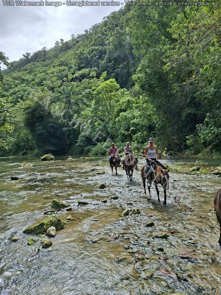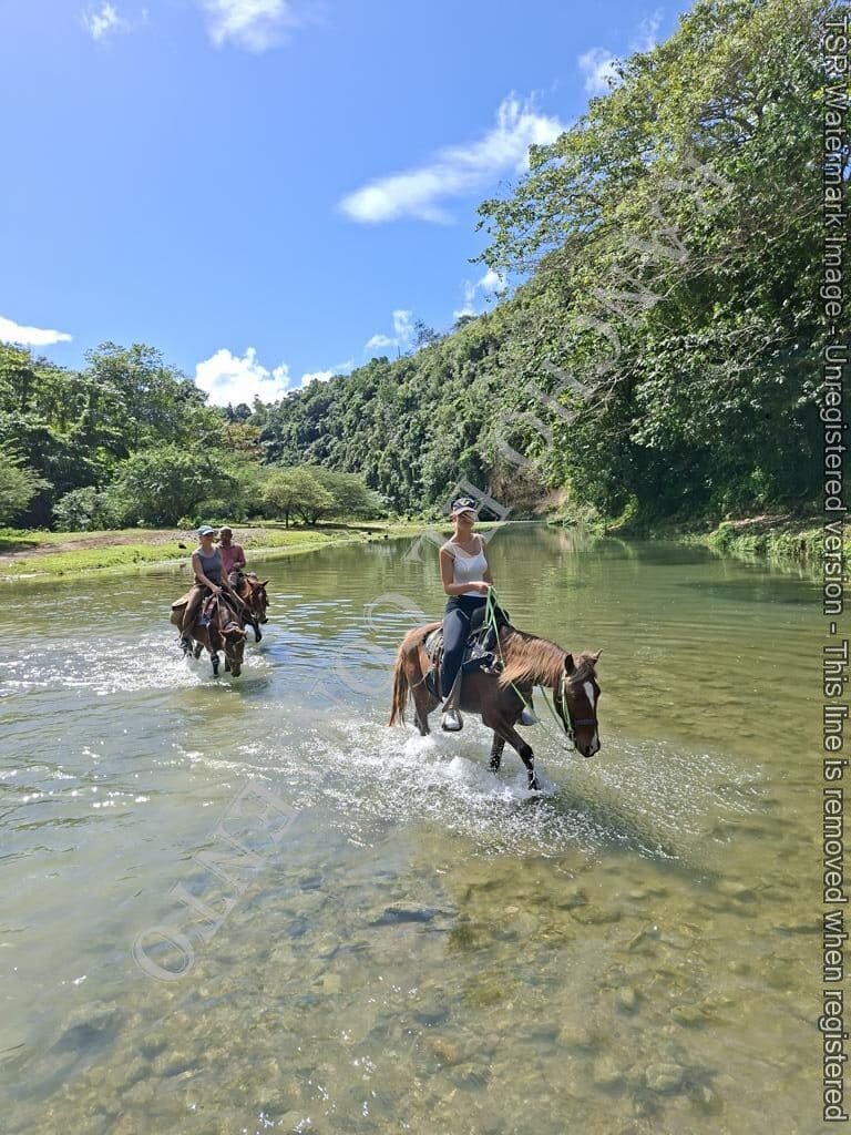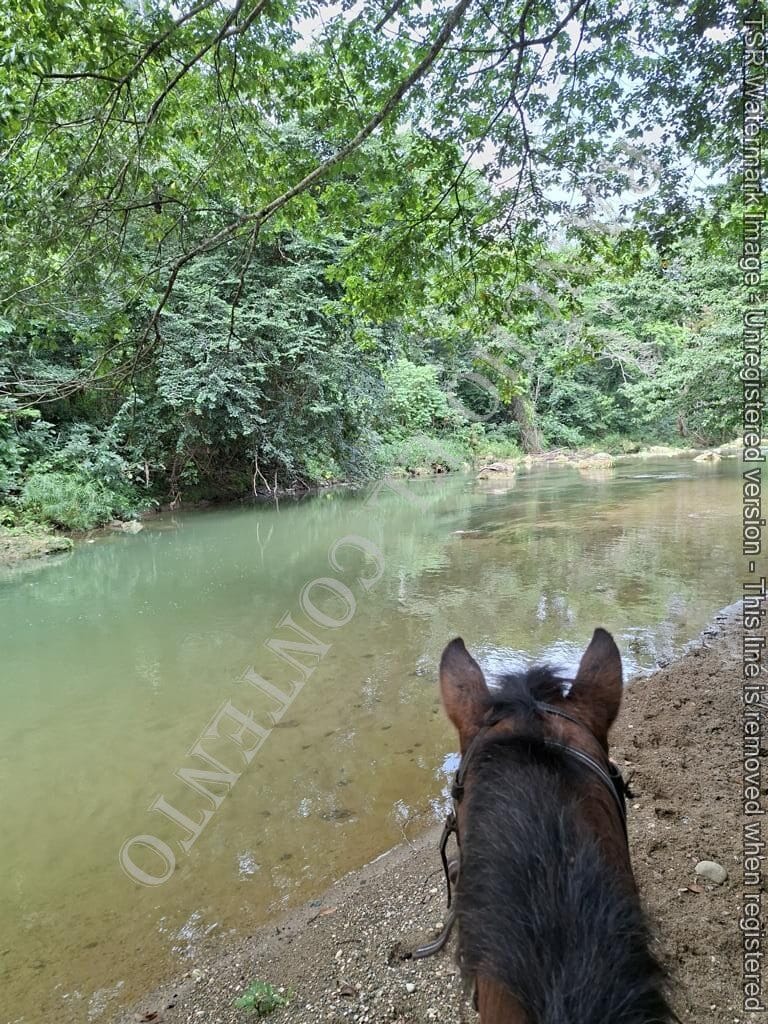 Berge und Fluß – heute waren wir mit erfahrene Reiter unterwegs und es ging dann auch etwas flotter voran . unsere Gäste aus Deutschland genossen die traumhafte Natur . Das wetter war auch super , nur ein kurzer Regenschauer , doch da waren wir am Colmado und machten gerade eine Pause , also im trockenen Danke an unsere Gäste Ute und Dorothee mit Tochter vom Casa Carmen Cabarete