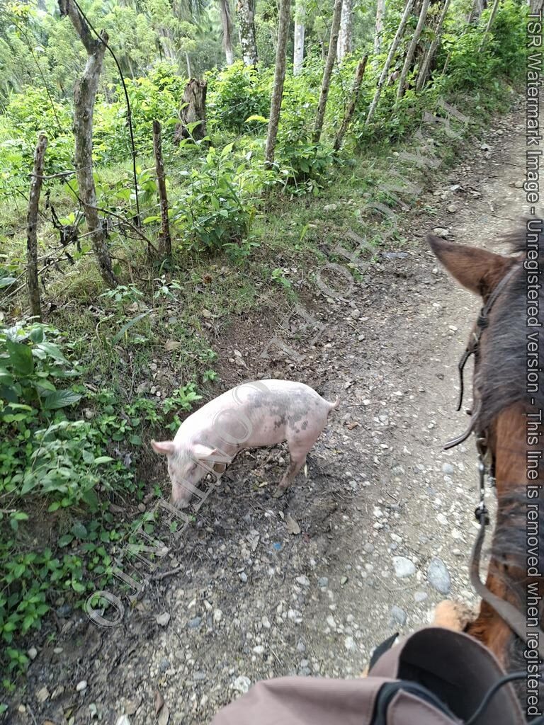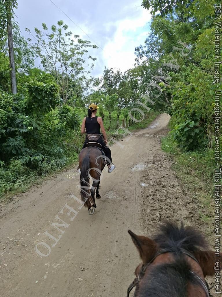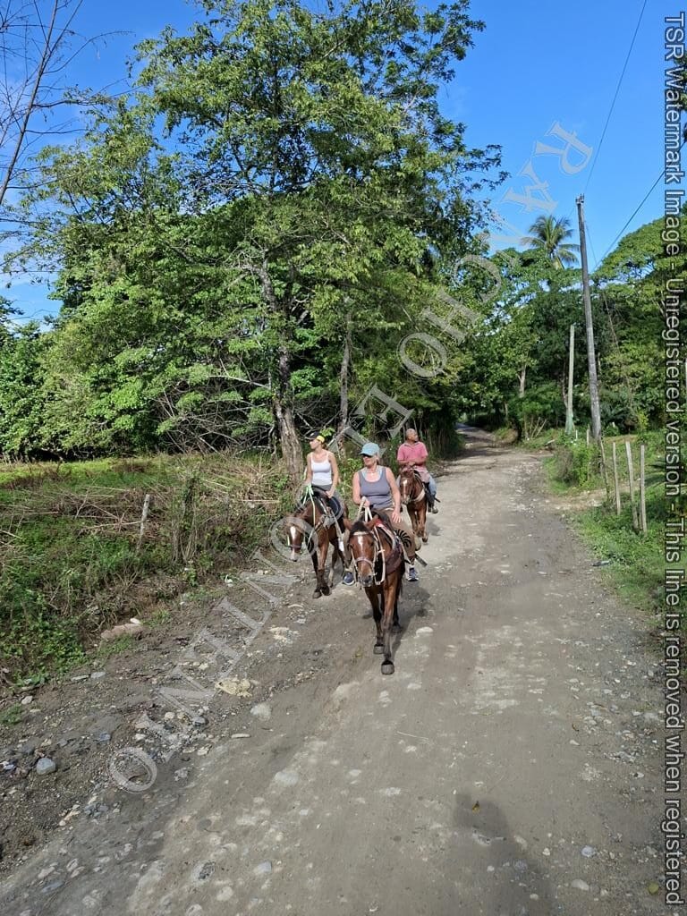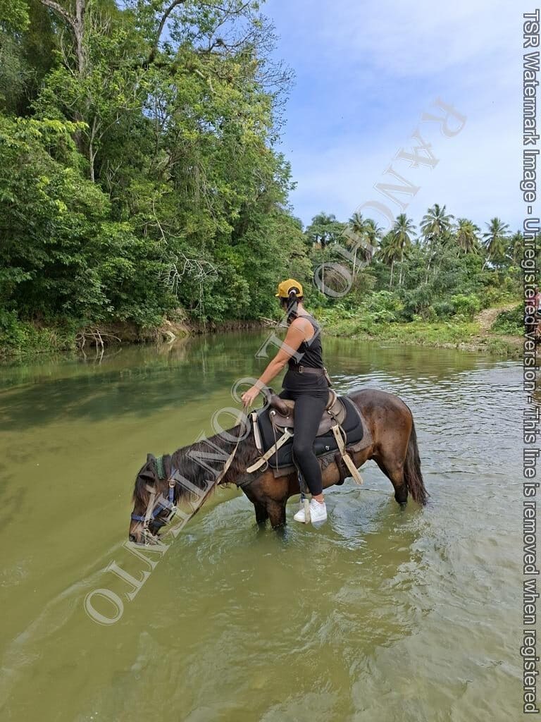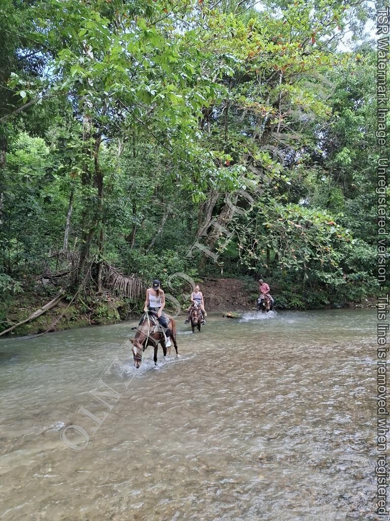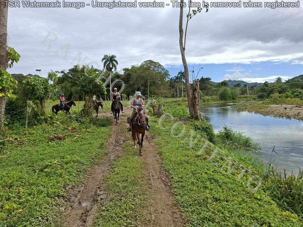 Berge und Fluß – heute waren wir mit erfahrene Reiter unterwegs und es ging dann auch etwas flotter voran . unsere Gäste aus Deutschland genossen die traumhafte Natur . Das wetter war auch super , nur ein kurzer Regenschauer , doch da waren wir am Colmado und machten gerade eine Pause , also im trockenen Danke an unsere Gäste Ute und Dorothee mit Tochter vom Casa Carmen Cabarete