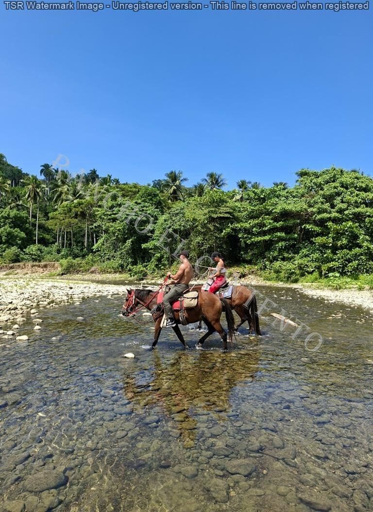 Ganztages Tour Berge und Fluß – gestern waren wir mit 2 netten Gästen aus New York unterwegs . Wir starteten um 9 Uhr und ritten in die Berge . Zur Mittagszeit machten wir eine Pause mit Möglichkeit zum baden im Fluß , und es gab Sandwiches zur Stärkung. Danach ging es weiter im Fluß und durch den Dschungel. Um etwa 14:30 uhr waren wir wieder zurück . Ein klasse Ausritt für Personen mit etwas und guter Reiterfahrung. Danke an unsere Gäste Justin und Bree vom Hotel Viva Wyndham Tangerine Cabarete , es war ein klasse Ausritt mit euch . Und danke an Jhonatan Taxi für den reibungslosen Transfer