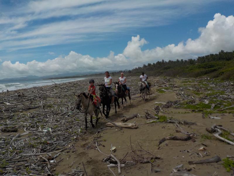 heute ritten wir durch die Dörfer bis zum naturbelassenem Sandstrand in Sabaneta – am Strand entlang bis zur Flußmündung La Boca – dort gab es dann leckeres Mittagessen im Restaurant von Wilson – danach wieder mit den Pferde zurück zur Ranch – Wetter, erst bewölkt , doch später Sonnenschein – ein schöner Tag mit netten Gästen und klasse Mittagessen 🙂 Danke an unsere Gäste Michaela mit Felix und Lydia vom Hotel Viva Tangerine Cabarete