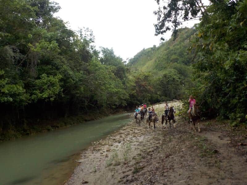 Halber Tag Berge und Fluß – kurz bevor wir los reiten wollten , fing es an zu regnen. Es schüttete wie aus Eimern. Donner, Blitz und alles was dazu gehört – also warteten wir noch und es hörte wieder auf 🙂 wir hatten einen regenfreien Ausritt 🙂 Danke an unsere Gäste und Freunde von der Sprachschule Casa Goethe Sosua , an Bianka, Magnus, Kevin, Rebekka und Benjamin vom Hotel Viva Tangerine Cabarete, an Jana vom Casa Mango Cabarete und an Bethany mit Partner von Iguana Mama Aventure Tours Cabarete 🙂 ihr wart eine tolle Gruppe 🙂
