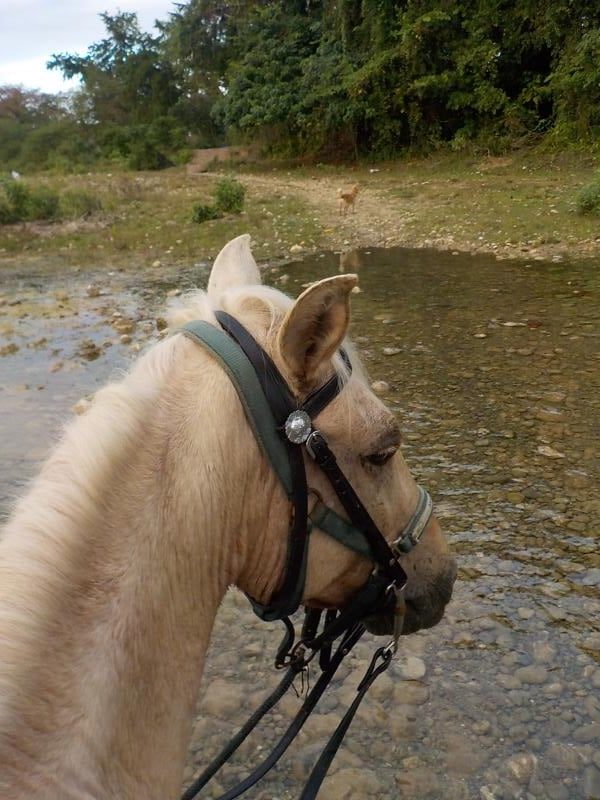 Nachmittags Berge und Fluß – wir hatten klasse Wetter für einen Ausritt , bewölkt aber trocken – super nette Gäste und tolle Pferde – ein perfekter Nachmittag Danke an unsere Gäste Marcel und Nico aus der Schweiz und danke an Hooked Surf & Kitecamp Cabarete für die Vermittlung