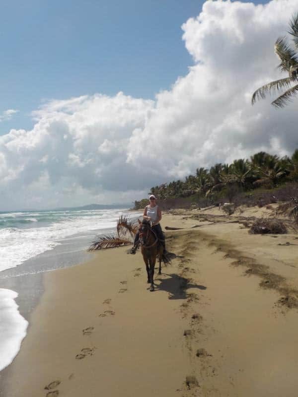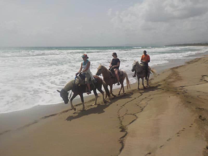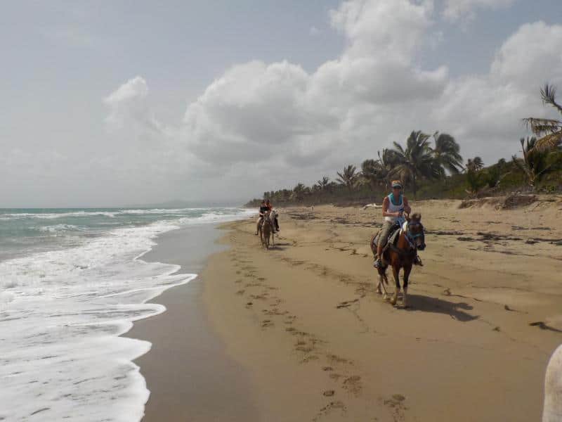 1/2 Tag Dörfer und Strand – früh morgens regnete es noch , doch es hörte auf und wir hatten einen klasse Ausritt mit etwas Sonne aber auch bewölkt – typisch dominikanisches Leben und einen naturbelassenen Sandstrand für uns allein – ein Traum 🙂 dazu noch super nette Gäste und tolle Pferde, so macht arbeiten richtig Spaß – Danke an unsere Gäste Yvonne, Lisbel und Amelia vom Hotel Viva Tangerine Cabarete – schön euch kennen gelernt zu haben 🙂