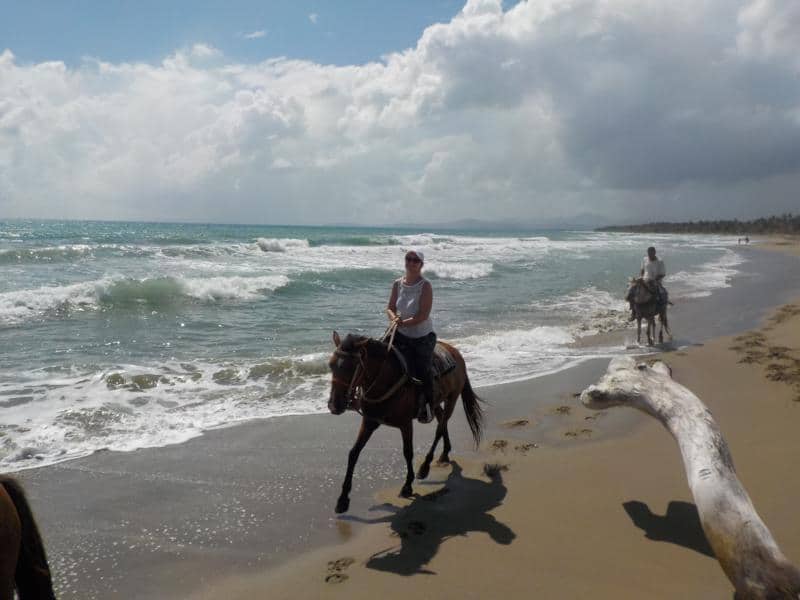 Vormittags Dörfer und Strand – heute hatten wir wieder Sonnenschein und auch etwas bewölkt – wir ritten durch die typischen Dörfer zum Strand – ein traumhafter Strand für uns allein – und dann im galopp am Strand entlang 🙂 nach einer kurzen pause für die Pferde und für uns, mit Erfrischunggetränk , gings wieder durch die Dörfer zurück zur Ranch – Thanks to Eric + Annie from www.cabarete.net and friend – we had fun with you 🙂