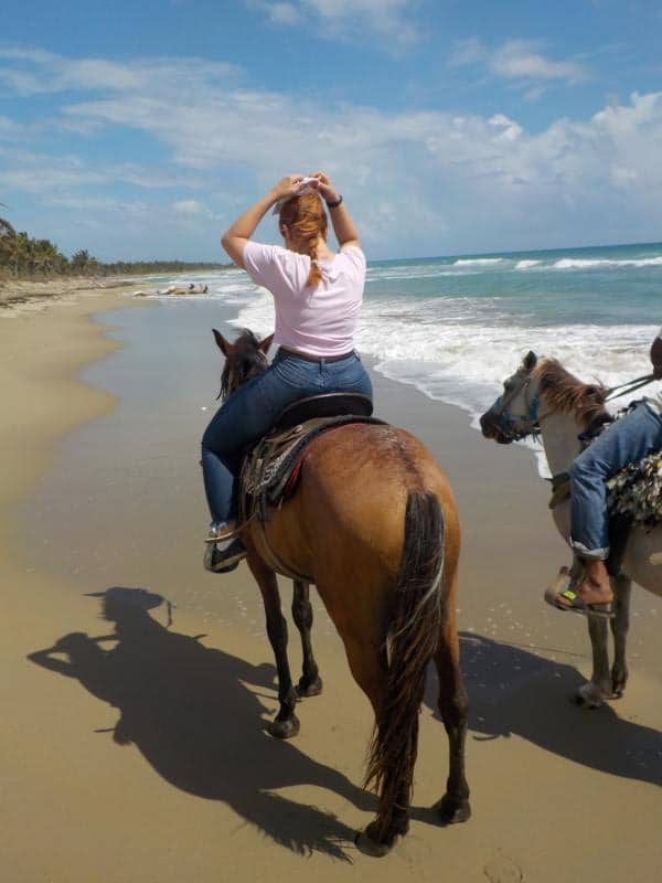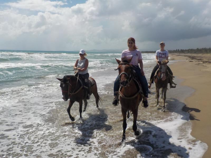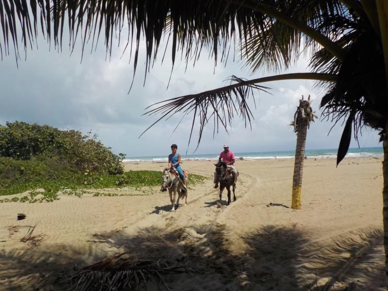 Halber Tag Dörfer und Strand – typisch , dominikanische Dörfer – wilder, naturbelassener Sandstrand für uns allein – klasse Pferde – und tolle Gäste – dazu bewölkt – ein perfekter Vormittag – Danke an unsere Gäste Heather, an Jenny und Alex vom Hotel Viva Tangerine Cabarete und an Willi von Aliga Tours Puerto Plata für die Vermittlung
