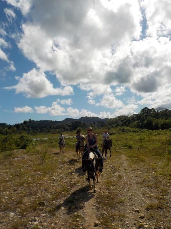 Vormittags Berge und Fluß – früh morgen hatten wir noch Regen , doch die Wolkendecke machte auf und so was es ein sonniger Ausritt durch die traumhafte Landschaft von Veragua – Danke an unsere Gäste Julia und Aurelia , es war ein schöner Sonntag Vormittag mit euch – und danke an Eric Tours International Sosua für die Vermittlung 🙂