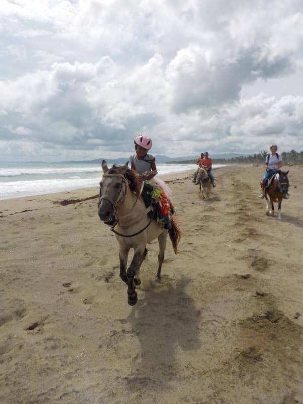 heute hatten wir einen besonderen Auritt 🙂 Mathilda hatte heute ihren 6. Geburtstag, und ihr Wunsch war: ein Ausritt durch die Dörfer, am Strand zu galoppieren und lecker Mittagessen im Wilson Restaurant an der Flußmündung la Boca – diesen Wunsch könnten wir ihr auch erfüllen 🙂 – danach gabs in der Ranch noch Kuchen für uns und Mais für die Pferde – Danke an unsere Gäste und Freunde Mathilda , Alex und Janina – es war ein toller Tag mit euch
