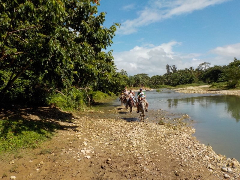 heute Vormittag hatten wir einen kleinen Familien Ausritt in den Fluß – die 2 kleinsten mit 2 und 5 Jahren durften bei Papa und Mama mit auf dem Pferd reiten . Doch vom Regen blieben wir leider heute nicht verschont und bekamen einen richtigen Regenschauer ab – Danke an unsere Wasserfesten, schweizer Familien aus dem Hotel Villa Taina Cabarete 🙂
