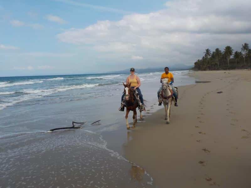 heute ritten wir durch die Dörfer zum naturbelassenen Sandstrand – im galopp am Strand entlang, bis zu der Flußmündung la boca – ein tolles Wetter , nette Gäste , ein super Vormittag – danke an unsere Gäste Omni und Calvin 🙂