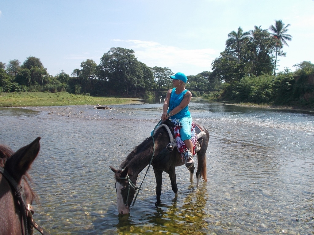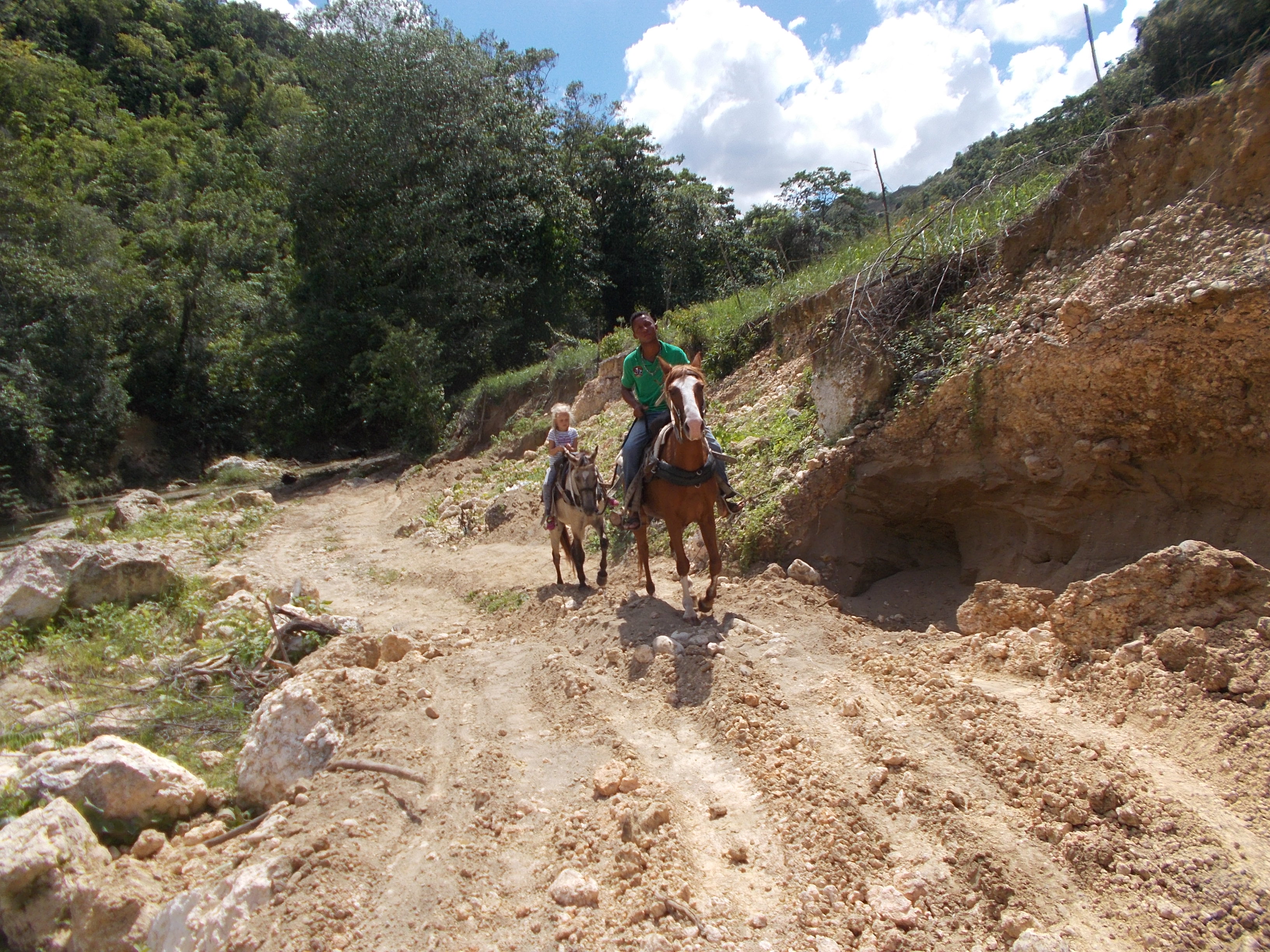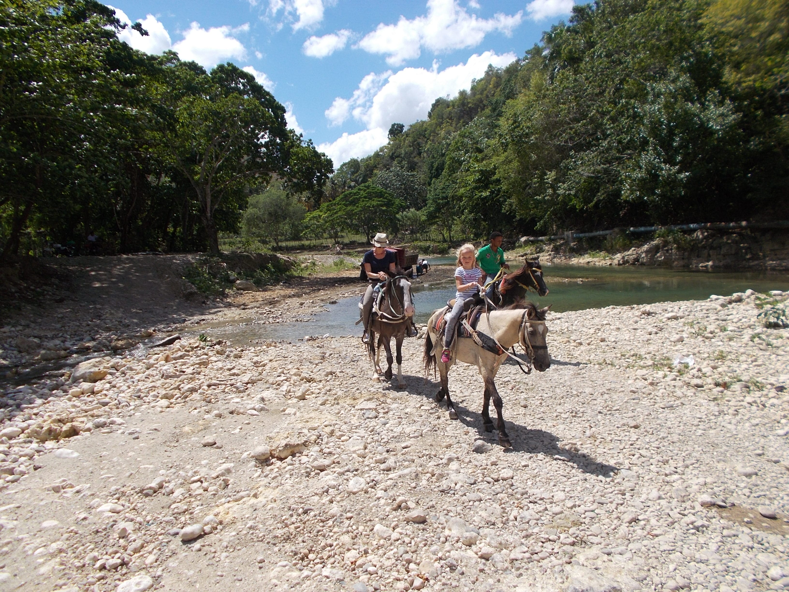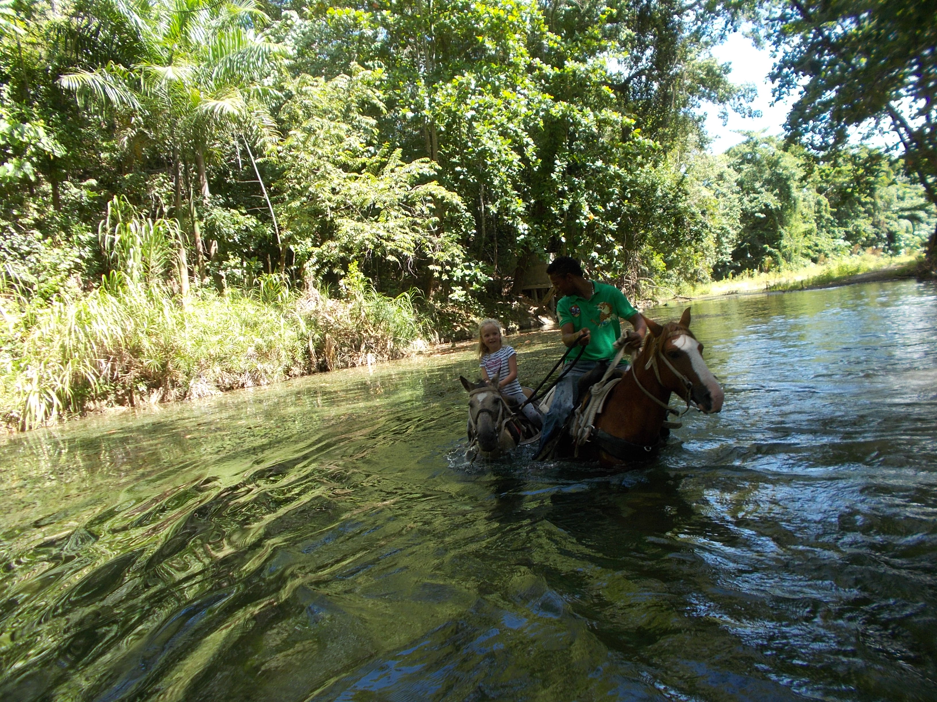 heute Vormittag machten wir einen kleinen Familienausflug – Kim und ihre Mutter ritten mit uns in die Berge und durch den Fluss – wir hatten viel Spass – Danke an unsere Gaeste vom Hotel Villa Taina Cabarete