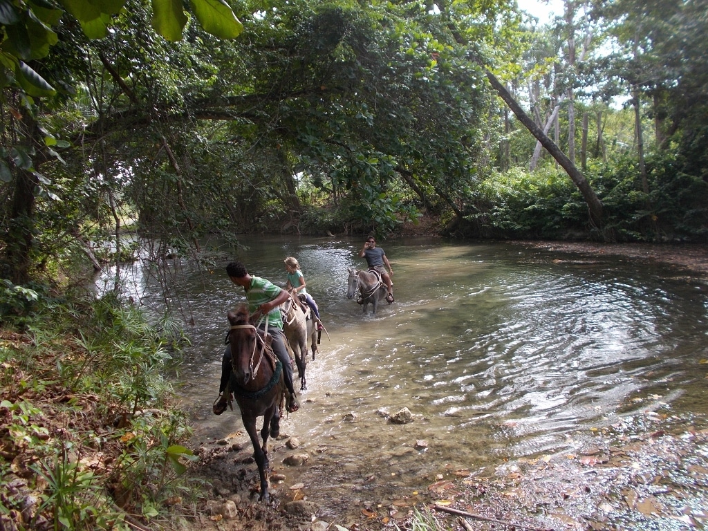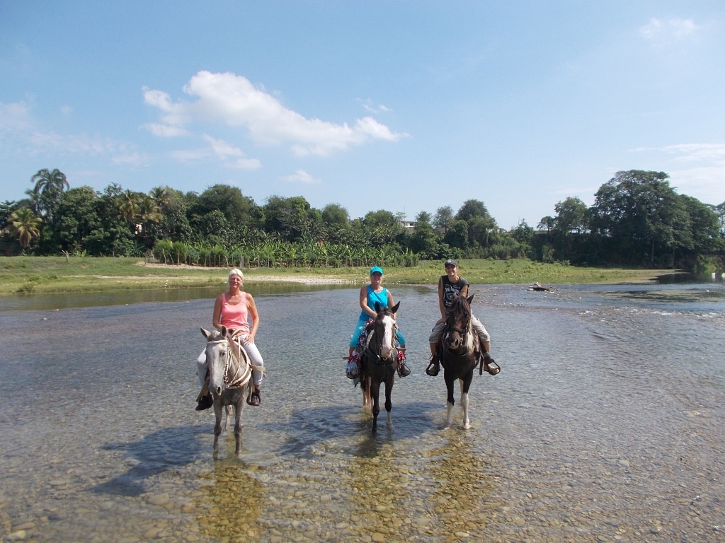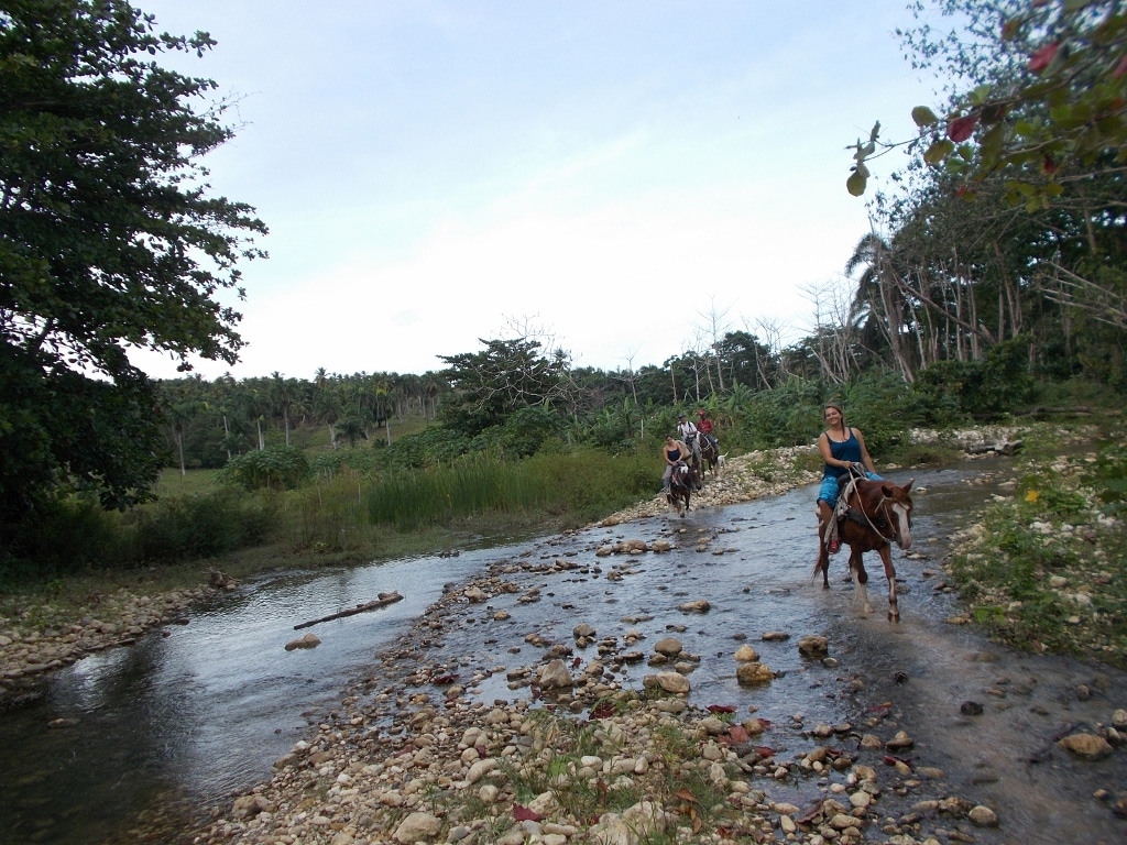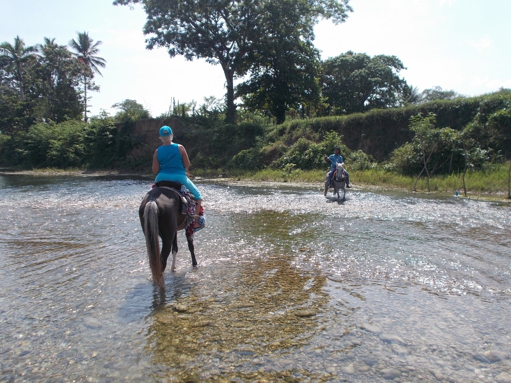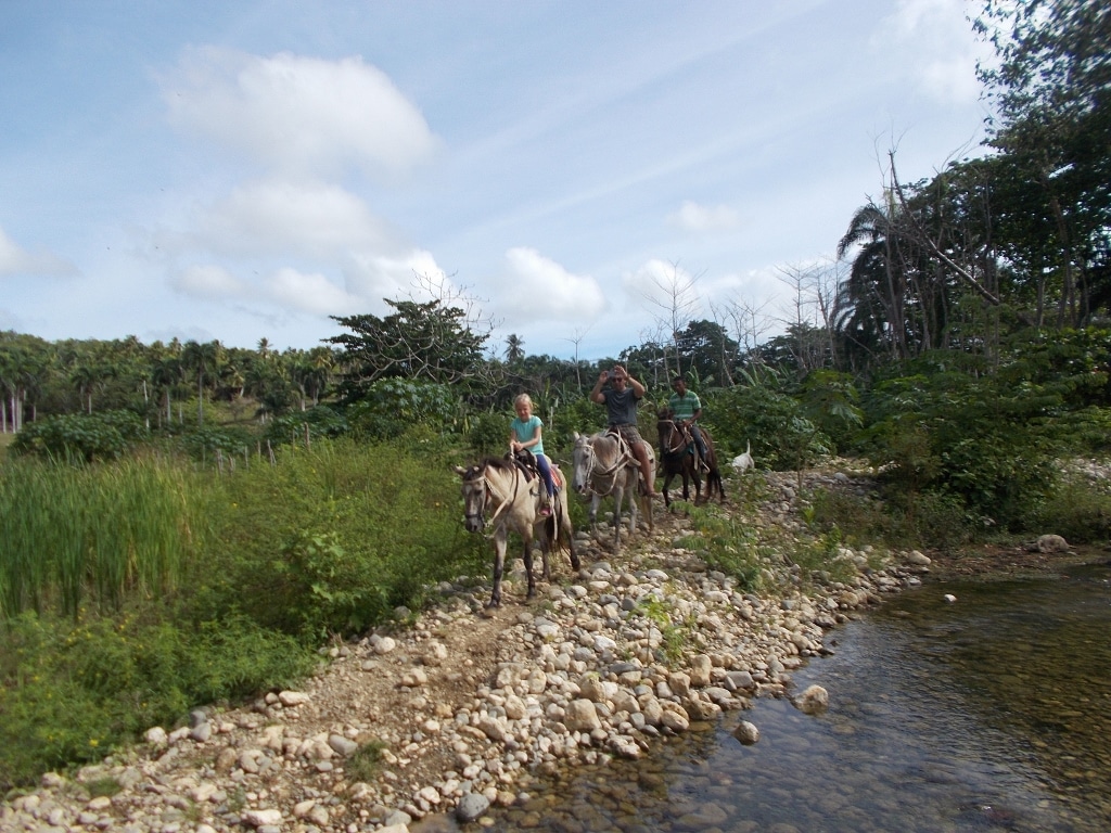 Nachmittags Tour in den Bergen und durch den Fluß – ein toller Auritt mit netten Gästen – Danke an unsere Gäste von der Sprachschule Casa Goethe in Sosua 🙂