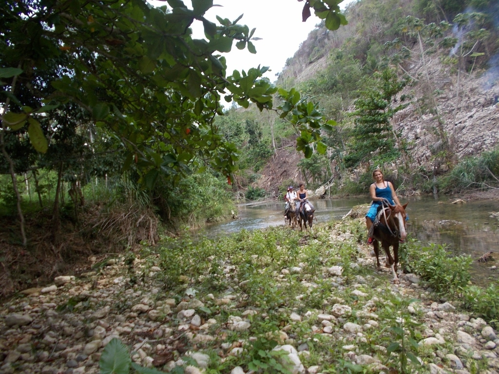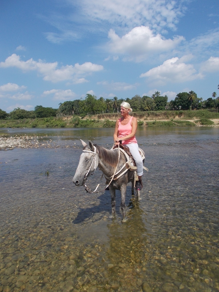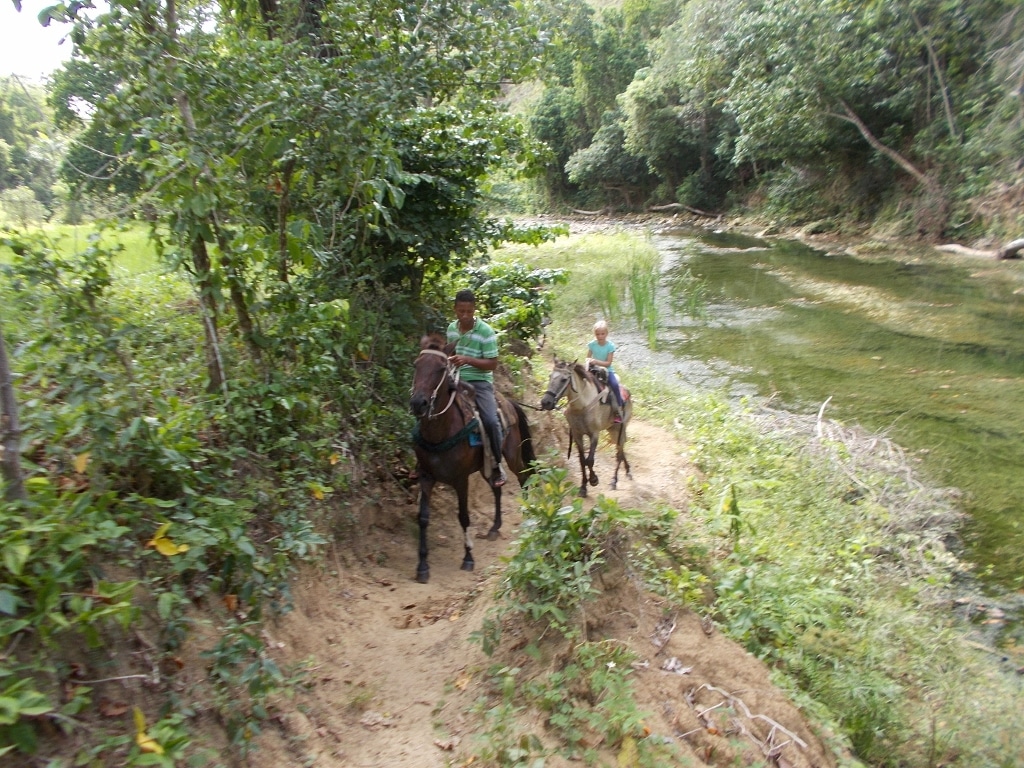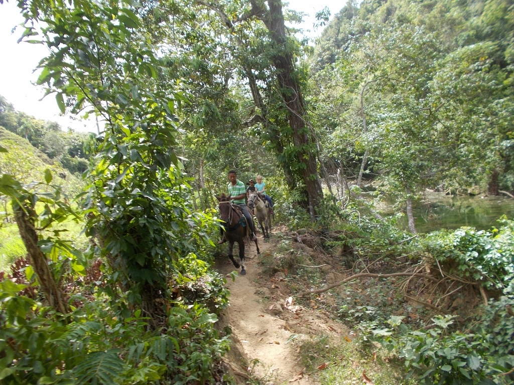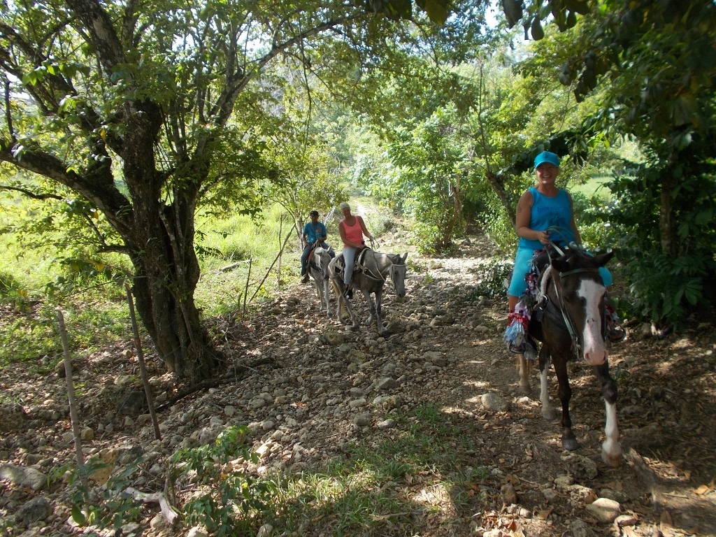 Nachmittags Tour in den Bergen und durch den Fluß – ein toller Auritt mit netten Gästen – Danke an unsere Gäste von der Sprachschule Casa Goethe in Sosua 🙂