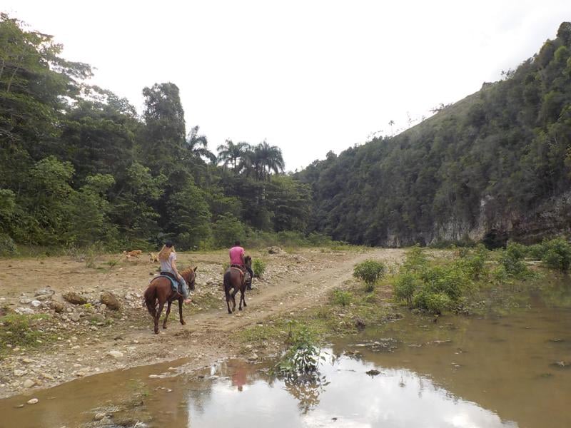 Nachmittags Berge und Fluß – wir hatten klasse Wetter für einen Ausritt , bewölkt aber trocken – super nette Gäste und tolle Pferde – ein perfekter Nachmittag Danke an unsere Gäste Marcel und Nico aus der Schweiz und danke an Hooked Surf & Kitecamp Cabarete für die Vermittlung