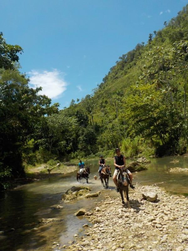 ein super Vormittag in den Bergen und im Fluß – Sonne und etwas bewoelkt – tolle Gaeste – klasse Pferde und traumhafte Landschaft – alles was man braucht fuer einen perfekten Ausritt – danke an unsere Gaeste Jaime und Nina von Iguana Mama Aventure Tours Cabarete