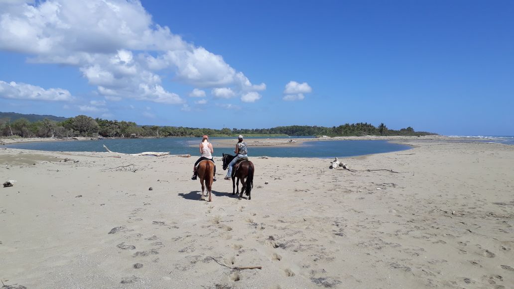 Ganztagestour „las Canas“ – alles in einem Tag: Strand , Dörfer, Fluß , Berge und Wasserfall 🙂 ein wunderschöner, aber anstrengender Ausritt – wir ritten heute ca. 43 km in 8 Stunden, nichts für Anfänger – Danke an unsere Gäste Monty mit Partnerin von Iguana Mama Adventures Tours Cabarete und an Jana und Lisa – war ein klasse Tag mit euch 🙂