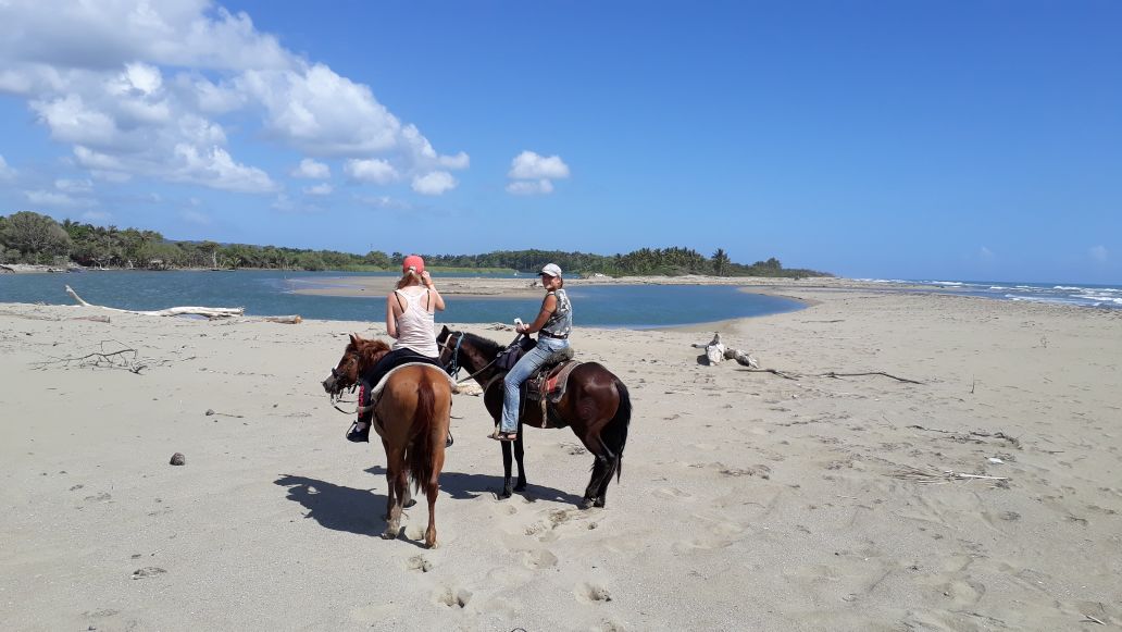 Vormittags Dörfer und Strand – heute wieder zum Strand bei strahlendem Sonnenschein 🙂 durch die typisch, dominikanischen Dörfer bist zum einsamen, naturbelassenen Sandstrand – ein super schöner Vormittag mit super netten Leuten – und natürlich klassen Pferden – so macht das richtig Spass – Danke an unsere Gäste Carda mit Partner vom Hotel Viva Tangerine Cabarete 🙂