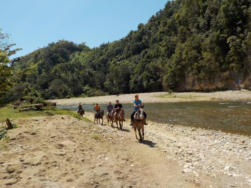 Vormittag Berge und Fluß – Wetter super 🙂 etwas bewölkt und auch etwas Sonne – tolle Gäste – klasse Pferde – ein perfekter Vormittag – Danke an unsere Gäste Elisabeth mit Familie und Freunde und an Ramona mit Mike vom Hotel Viva Tangerine Cabarete 🙂