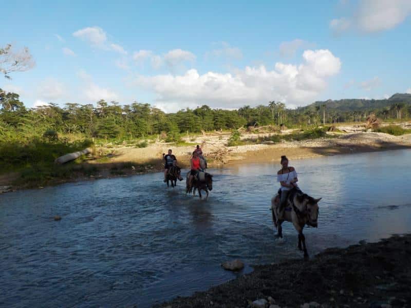 Vormittag Berge und Fluß – ein wunder schöner Tag mit Sonnenschein – super nette Gäste aus Norwegen und Finnland – und ganz tolle Pferde – ein klasse Ausritt – danke an unsere Gäste von Iguana Mama Aventure Tours Cabarete 🙂