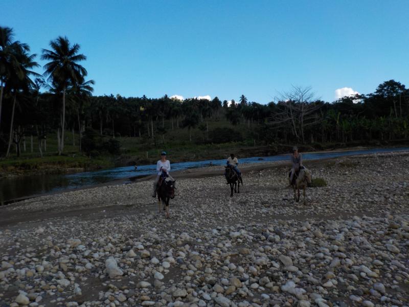durch dominikanische Dörfer bis zum naturbelassenem Sandstrand – dort dann am Strand entlang bis zur Flußmündung „la Boca“ – bei Wilson im Restaurant lecker Mittagessen , Fisch oder Hünchen – danach wieder zurück zur Ranch – ein schöner Tag mit netten Gästen – Danke an unsere Gäste Helmut und Maura 🙂
