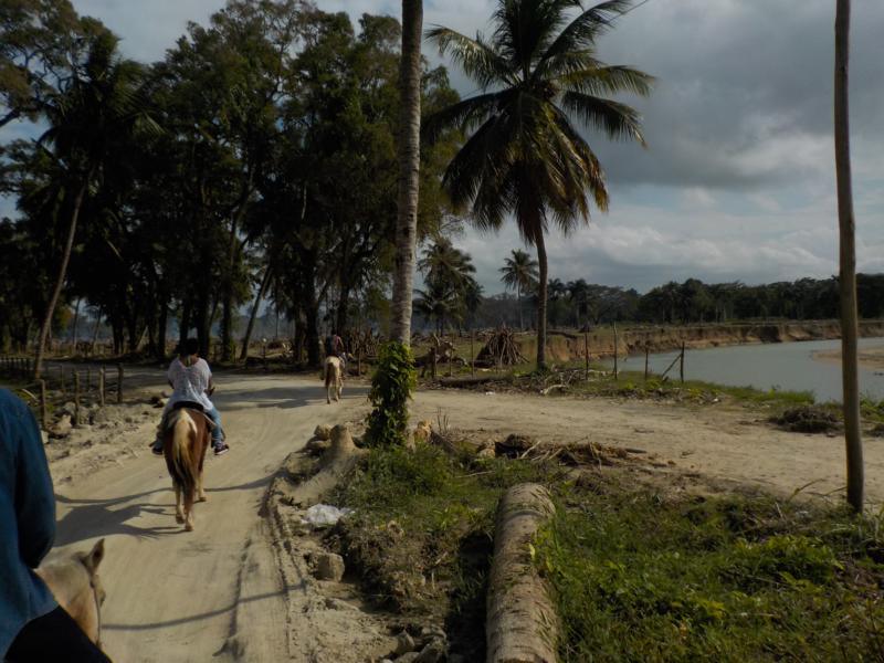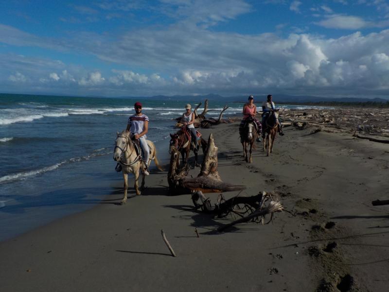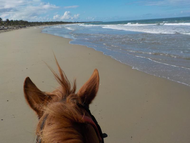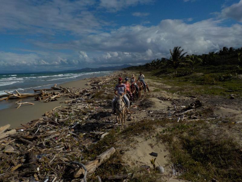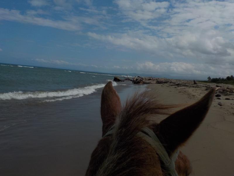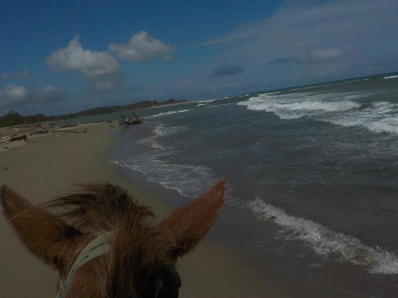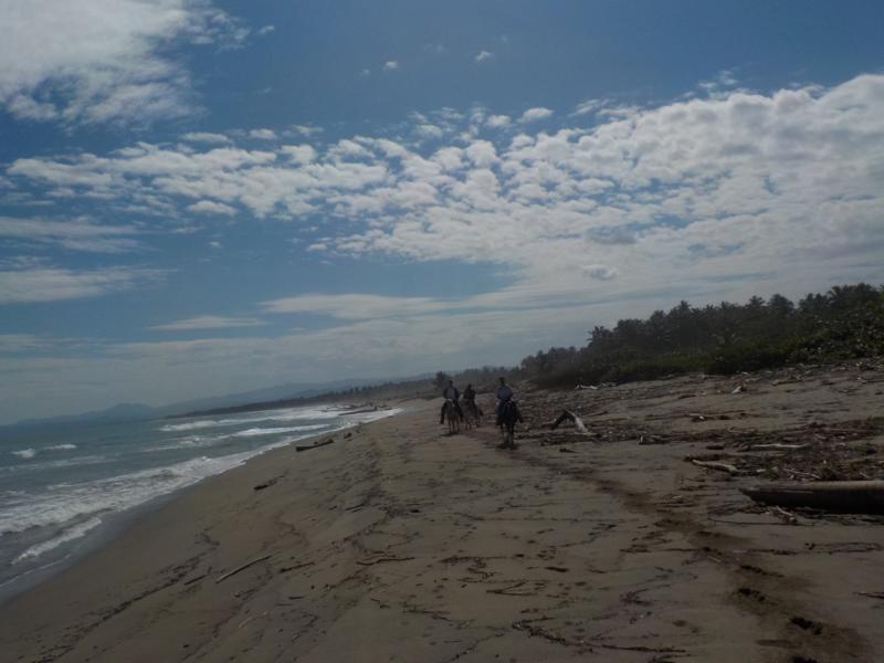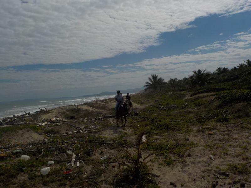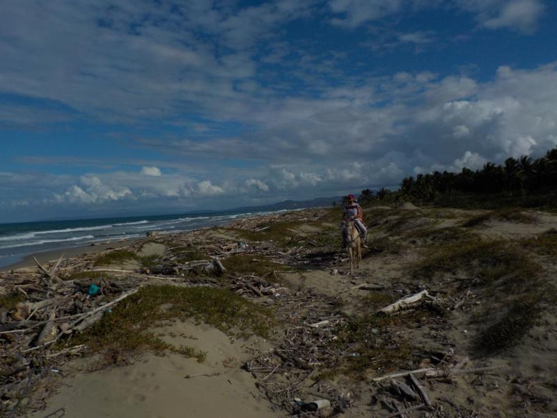 heute Vormittag ritten wir durch Dörfer bis zum Strand – man sieht noch sehr gut die Überreste vom Hochwasser – auch am Strand sehr viel Bäume,Äste und Müll , der vom Fluß Yasica dort hin gebracht wurde – trotz den Umständen hatten wir einen schönen ausritt mit kleinen Hinternissen, die wir aber gut gemeistert haben – Danke an unsere Gäste Susanne und Nicole , es machte Spass mit euch beiden 🙂