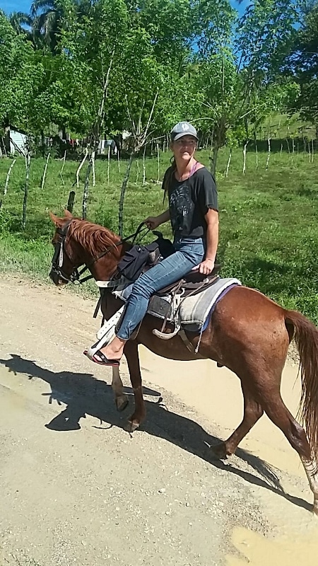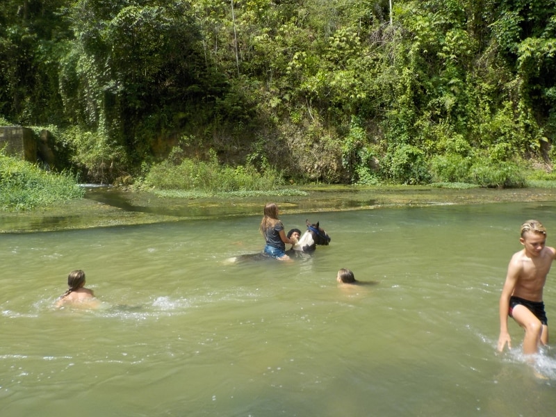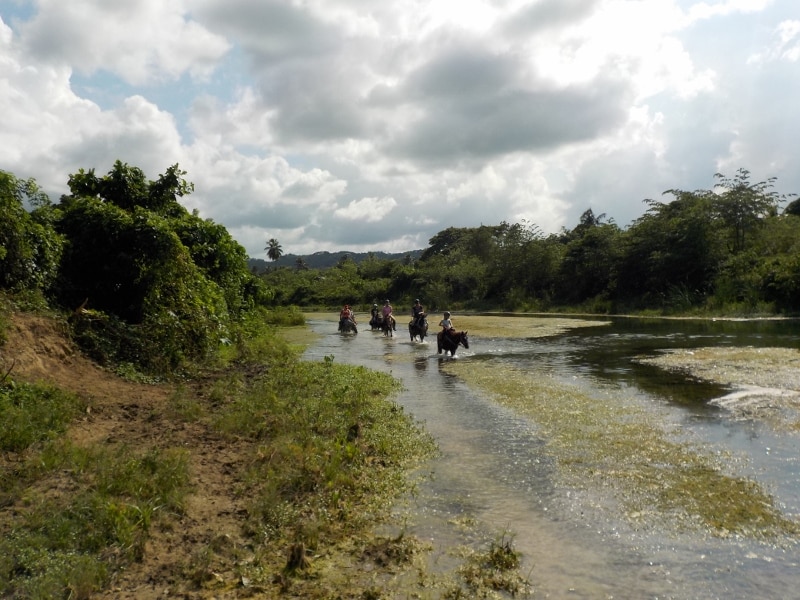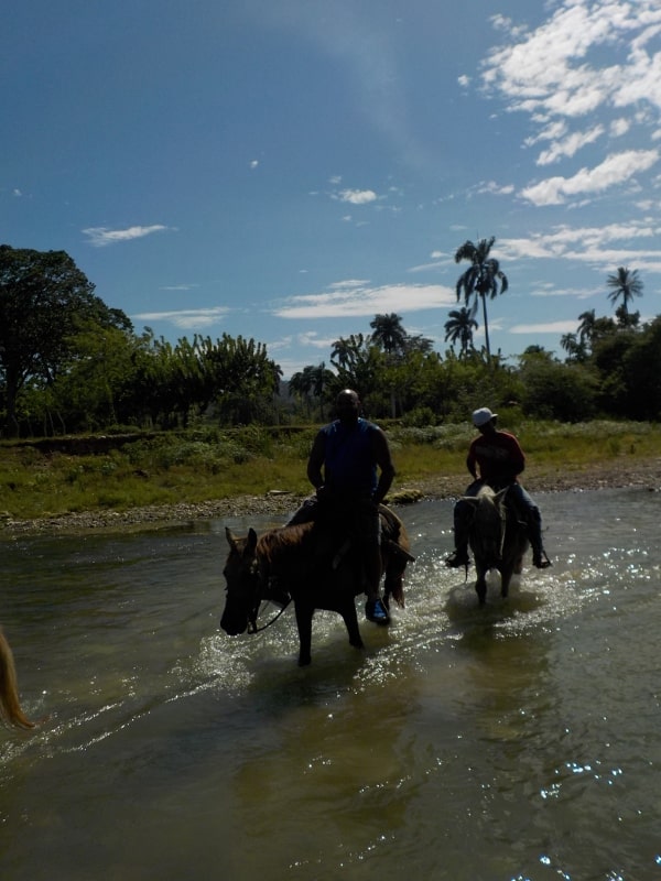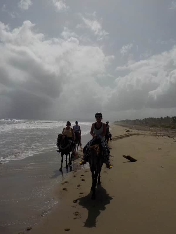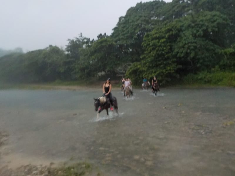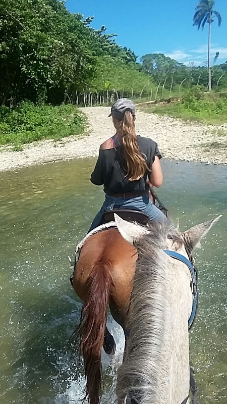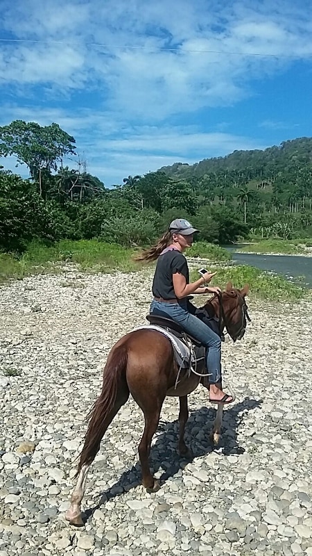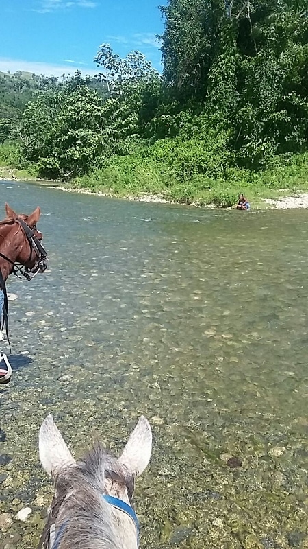 heute Nachmittag waren wir in den Bergen und im Fluß – wir hatten schönes Wetter als wir los ritten , doch die letzten 20 Minuten holte und ein Gewitter ein und wir wurden Nass 🙁 – trotz Regen hatten wir viel Spass – Danke an unsere tollen Gäste von der Sprachschule Casa Goethe Sosua 🙂