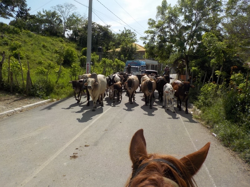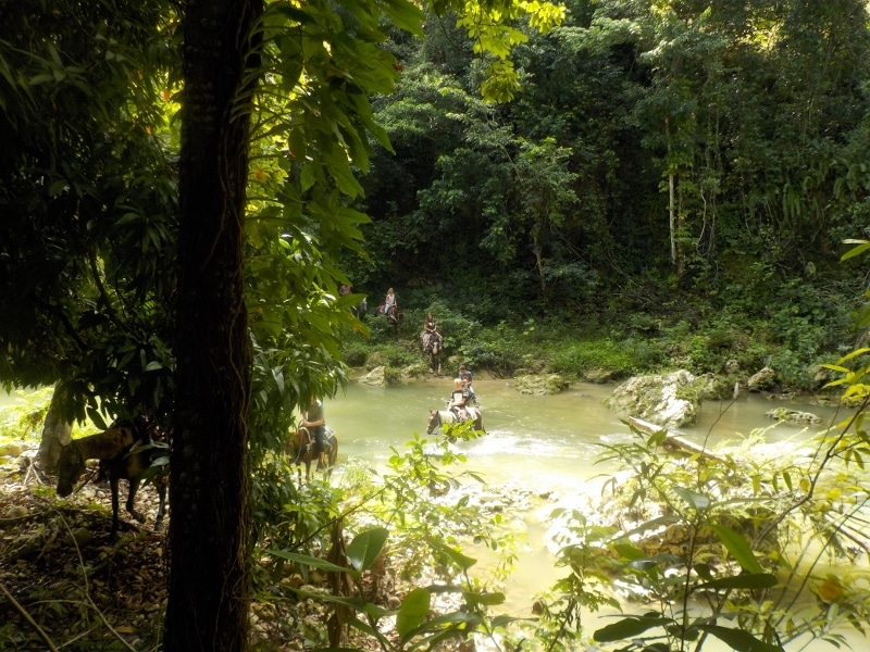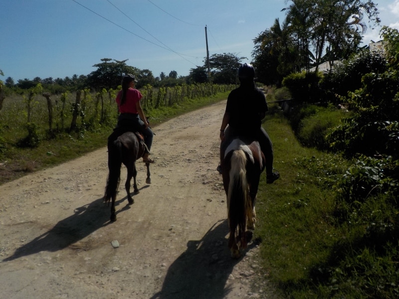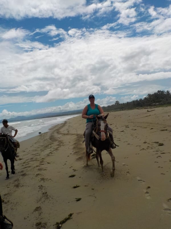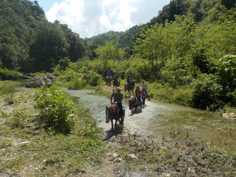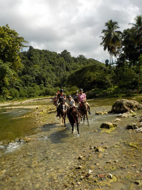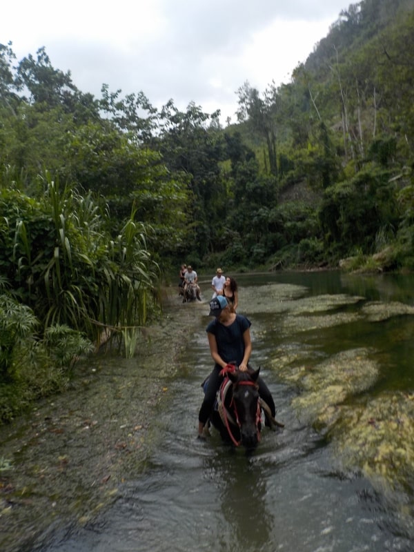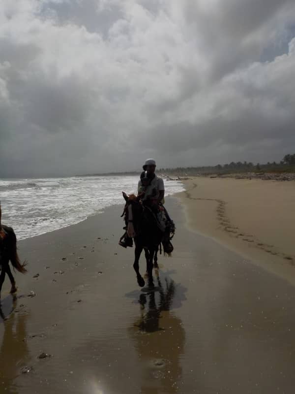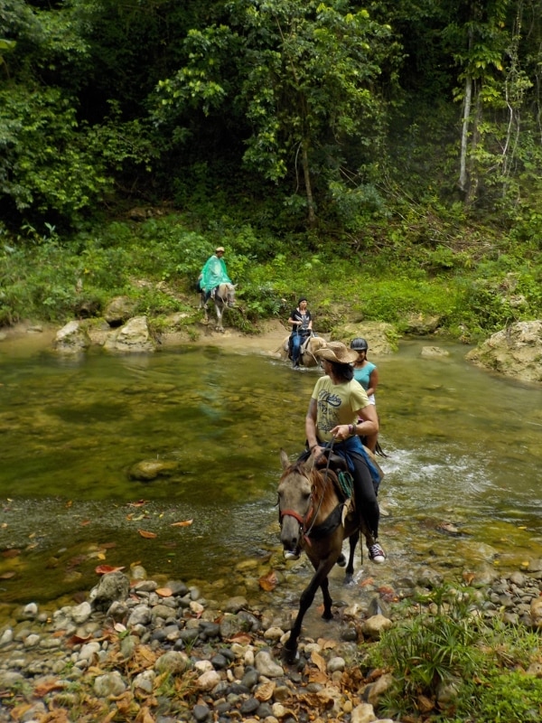 heute Nachmittag waren wir in den Bergen und im Fluß – wir hatten schönes Wetter als wir los ritten , doch die letzten 20 Minuten holte und ein Gewitter ein und wir wurden Nass 🙁 – trotz Regen hatten wir viel Spass – Danke an unsere tollen Gäste von der Sprachschule Casa Goethe Sosua 🙂