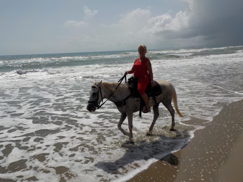 gestern hatten wir eine junge Dame und ritten durch die Dörfer zum Sandstrand – dort hatten wir alle Spass beim galoppieren – auch Heike mit ihrem Rescue Pferd „Shadow“ waren gemeinsam zum ersten mal mit dabei am Strand und auch die beiden hatten Spass 🙂 – Danke an alle die dabei waren und sich auch von einem kleinem Regenschauer die gute Laune nicht nehmen lasten