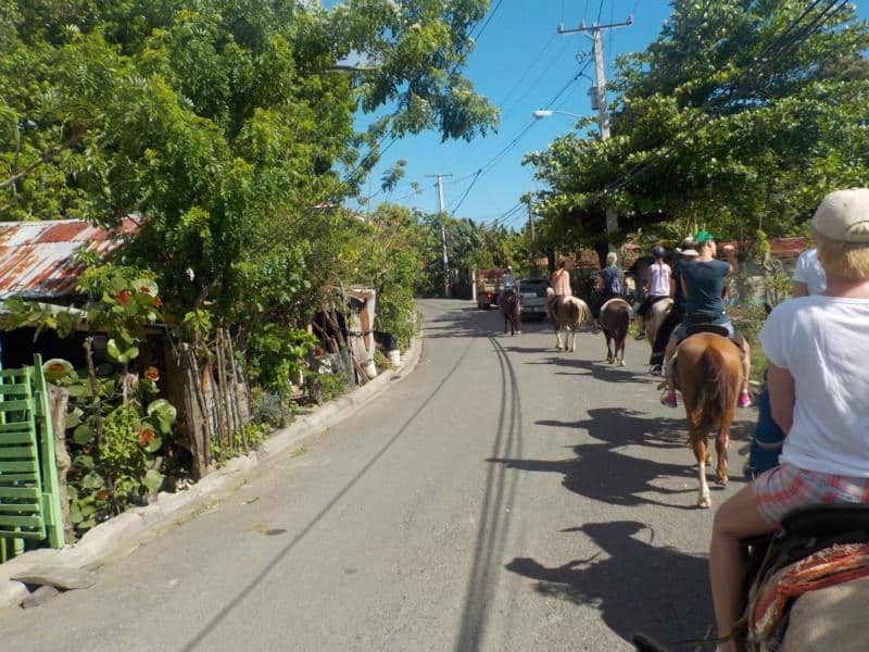 kleine Tagestour durch die typischen, dominikanischen Dörfer und am Strand entlang bis zur Flußmündung la Boca – dort lecker Mittagessen im Wilson Restaurant – danach wieder zurück zur Ranch – eine tolle Tagestour, auch für Anfänger – danke an unsere Gäste Heather mit Partner und Freunden, an unsere Gäste aus der Schweiz und an Bianka – war ein toller Ausritt mit euch allen 🙂