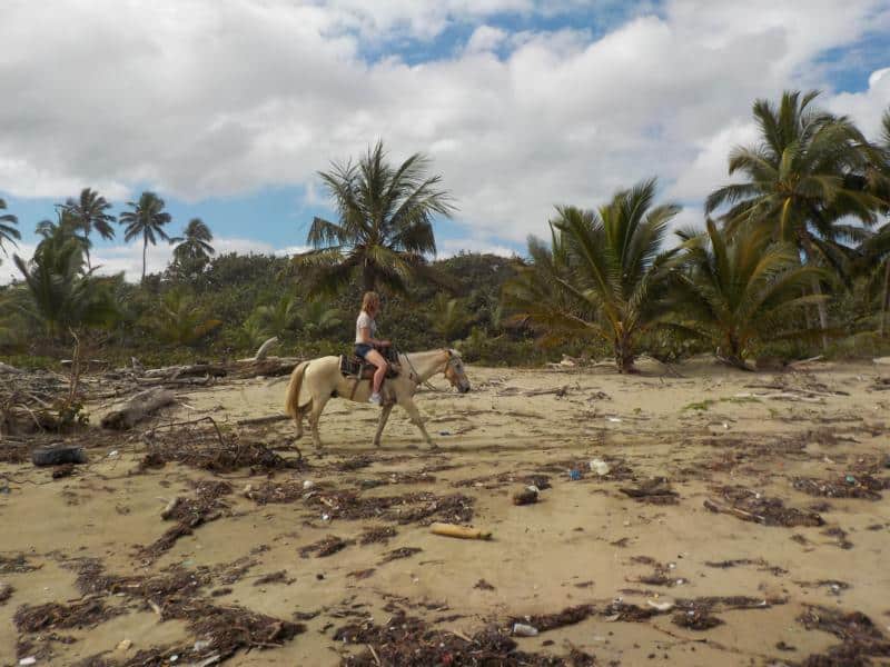 Vormittags durch die typischen Dominikanischen Dörfer von Veragua bis zum naturbelassenem Sandstrand – dann am Strand entlang bis zu der Flußmündung la boca – und nach einer Pause zurück zur Ranch – ein toller Ausritt bei Sonnenschein und netten Gästen – danke an unsere Gäste aus Frankreich , die über Eric Tours Internationa Sosua gebucht haben 🙂