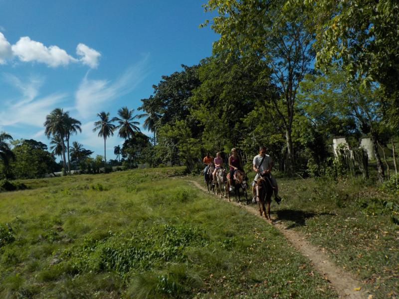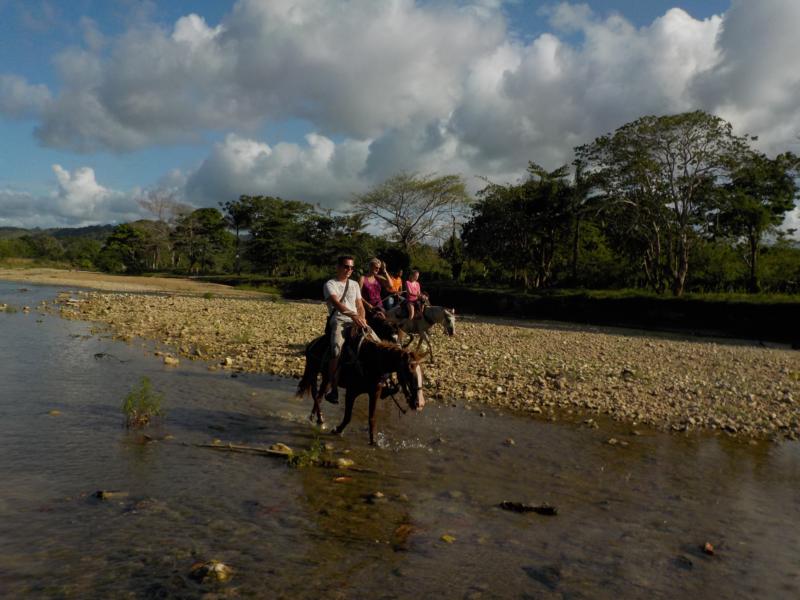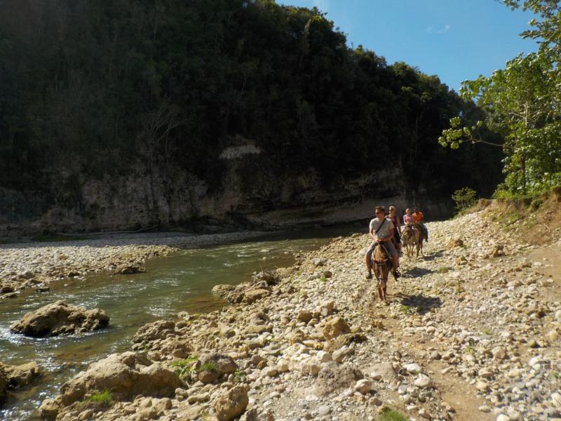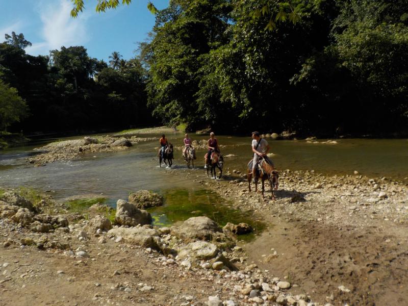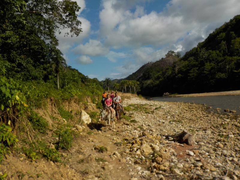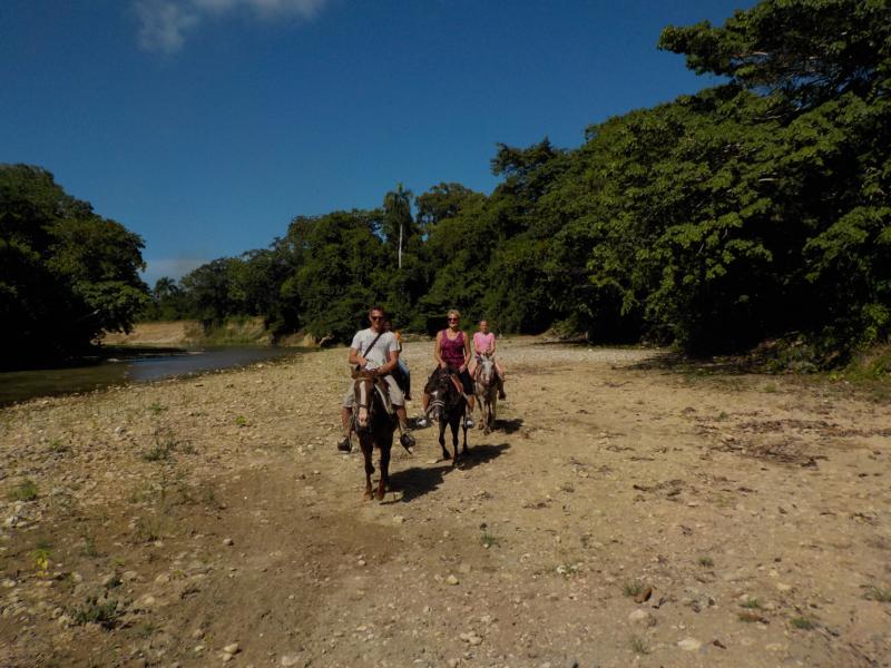 Halber Tag Berge und Fluß – nach dem es heute Nacht ein starkes Gewitter hatte und heute Morgen immer noch regnete , gaben wir aber die Hoffnung nicht auf- und ja es hörte auf zu regnen – wir hatten ein tolles Wetter zum reiten , bewölkt aber trocken 🙂 und wieder eine gemischte Gruppe , Erwachsene und Kinder , mit Reiterfahrung und auch ohne – danke an unsere Gäste und Freunde von der Tauchschule Merlin Sosua – es macht immerwieder Spass mit euch 🙂