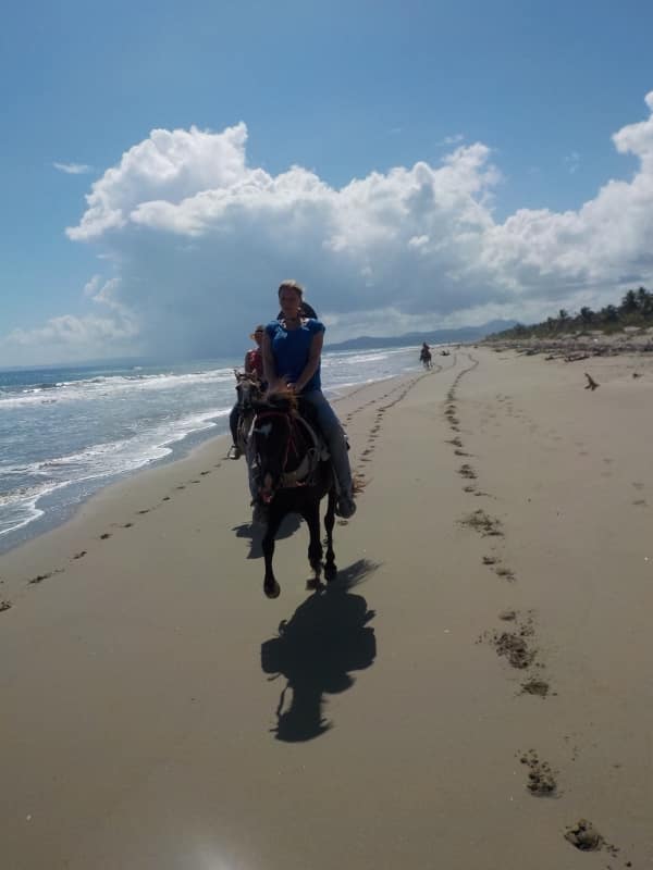 Vormittag Dörfer und Strand – bei Sonnenschein am Strand einfach super – und dann noch 3 nette Mädels , die Spaß am galoppieren haben – super Vormittag – Danke an unsere Gäste Ronja, Maike und Anja wir hatten einen klasse Strandritt mit euch 🙂